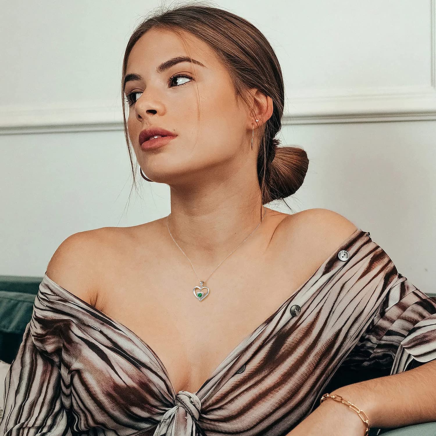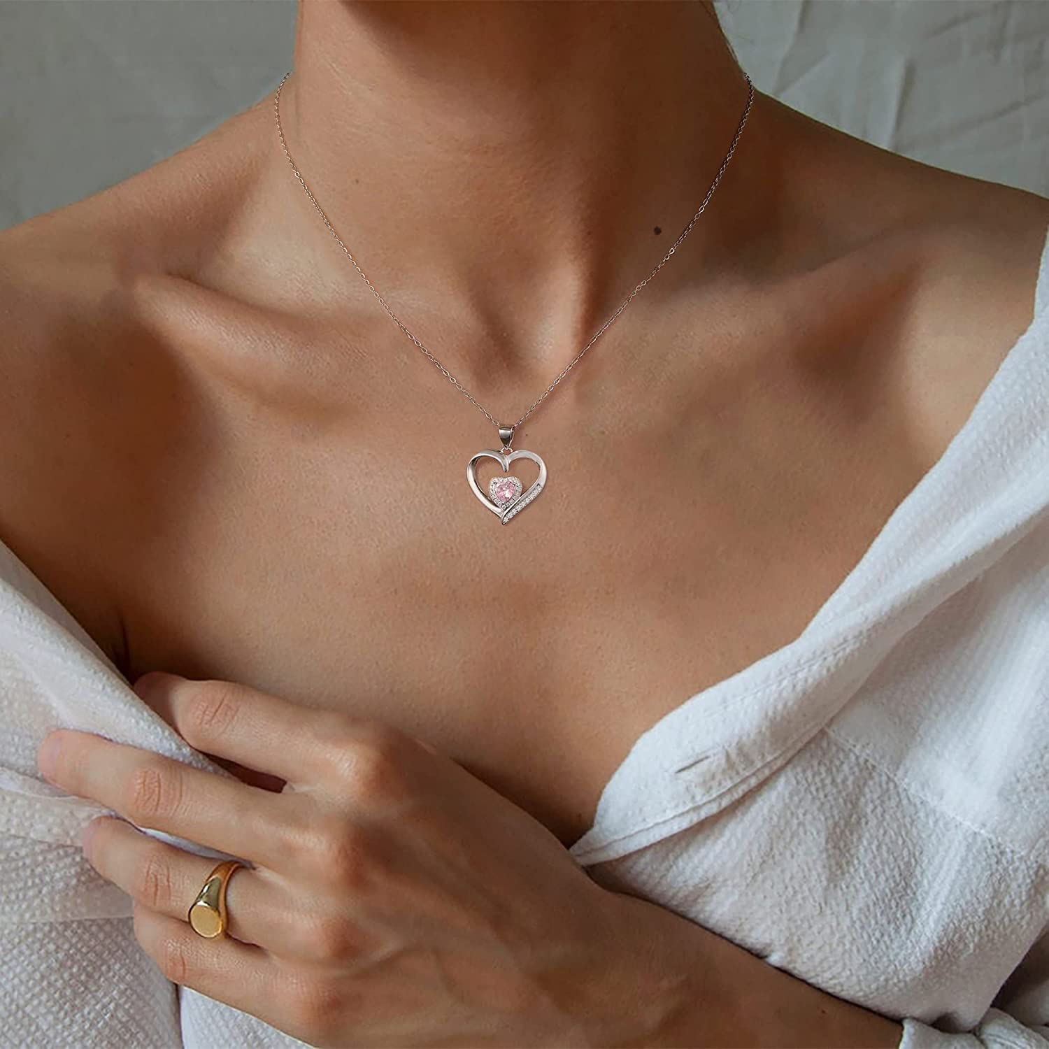 Heart Birthstone Necklace for Women, S925 Sterling Silver Necklace Birthstone Necklace Heart Necklace for Women Teen Girls Birthday Jewelry Gifts for Women Teen Girls