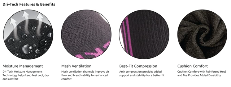 Dri-tech Moisture Control Sock Collection features: Moisture Management to help keep your feet cool, dry, and comfortable throughout the day.