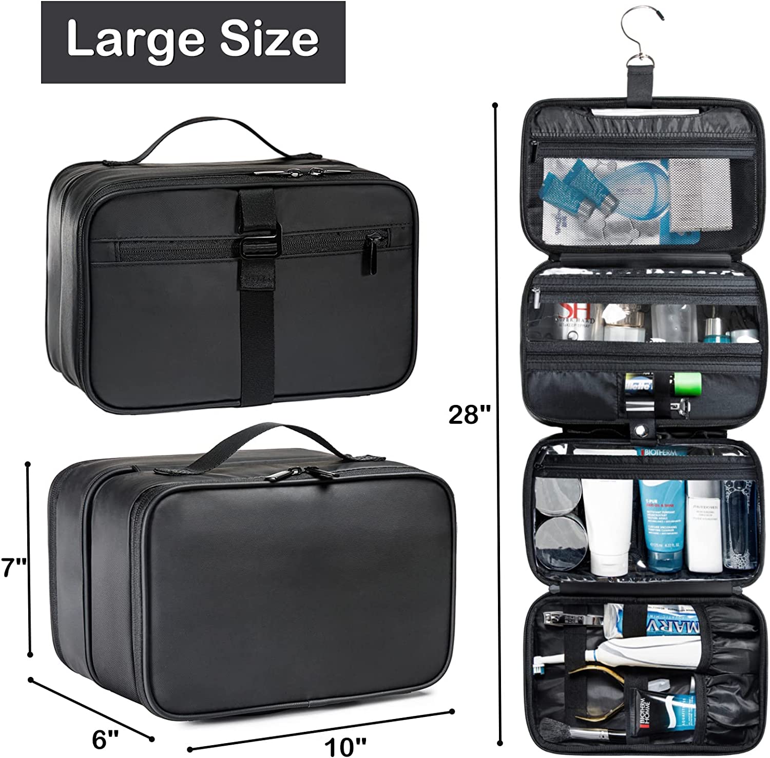 • Large Capacity - Meet all the storage needs of full-size toiletries or shaving supplies, It would be also a great gift for family, friends, and couples. Dimension: 10.5 x 7 x 7.5 inch, 10.5 x 28 inch (open)