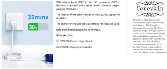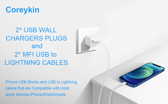 - 【Original MFi Certified Charging Cables】: Coreykin's Tangle-free 6 Feet USB fast charging cables with original Apple MFi Chip,promises no warning message pops up. Built-in Intelligent Chipset provide overvoltage protection, battery protector and automatic chip recognition functions ensure your iPhone/iPad/Airpods battery safe.