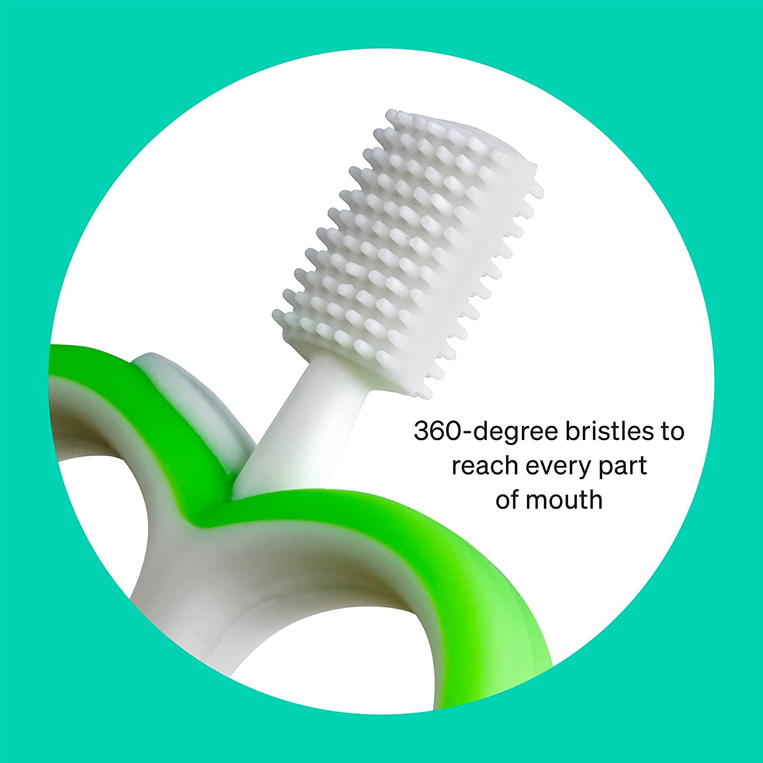• Double sided, 360 silicone toothbrush allow reaching all sides of gums, providing an enhanced experience for toddlers.