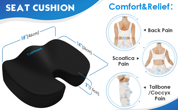 - 【Pain Relief Cushion】Place on any chair to provide extra support to your body to offload pressure on your spine, back, and sciatic nerve. Effectively relieve back, coccyx, sciatica, tailbone pain.