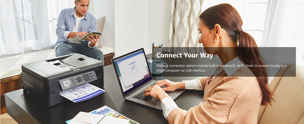 • WORRY-FREE PRINTING USING PAGE GAUGE(2).Eliminate the guesswork of ink replacement when you use the Brother Mobile Connect(1) App to access Page Gauge, so you know the amount of ink you’ve used and the amount of ink you have remaining(2).