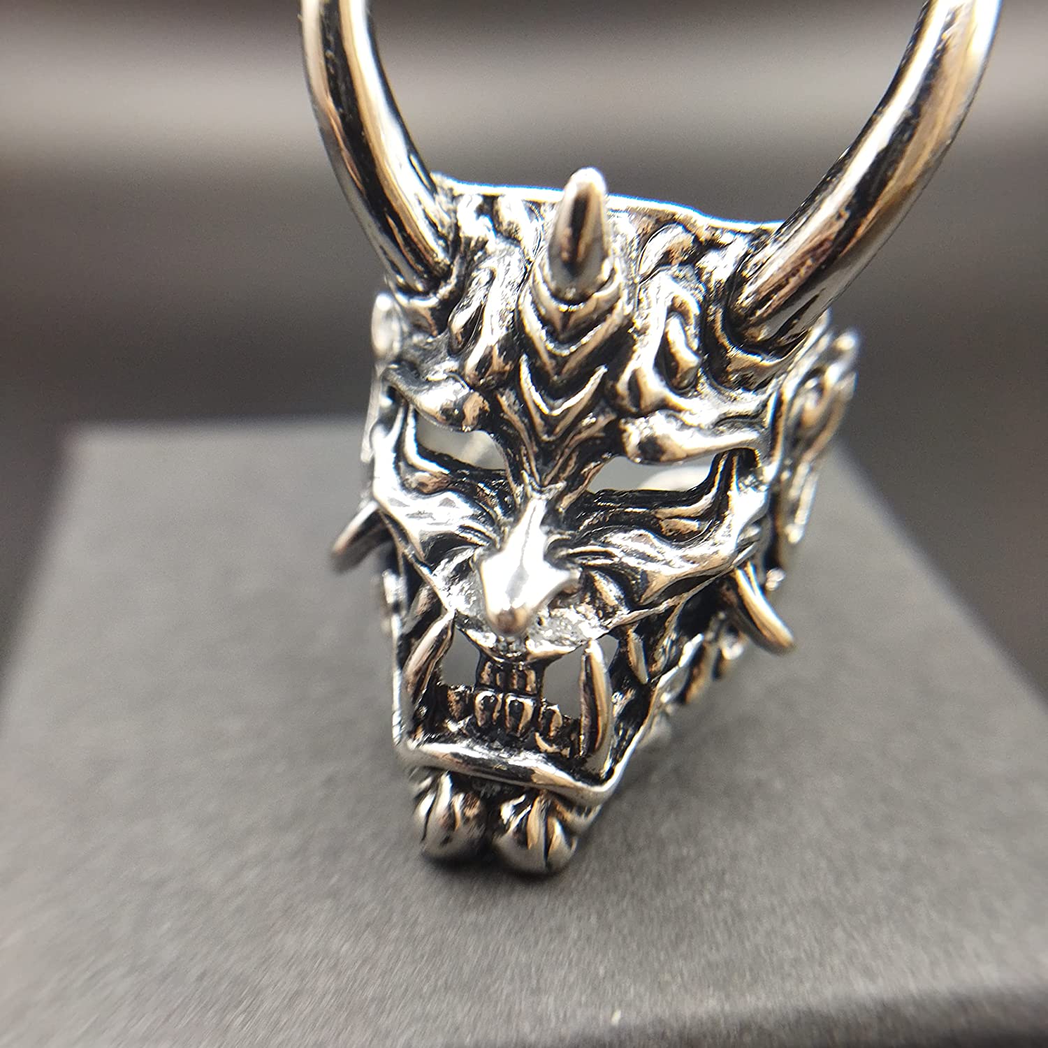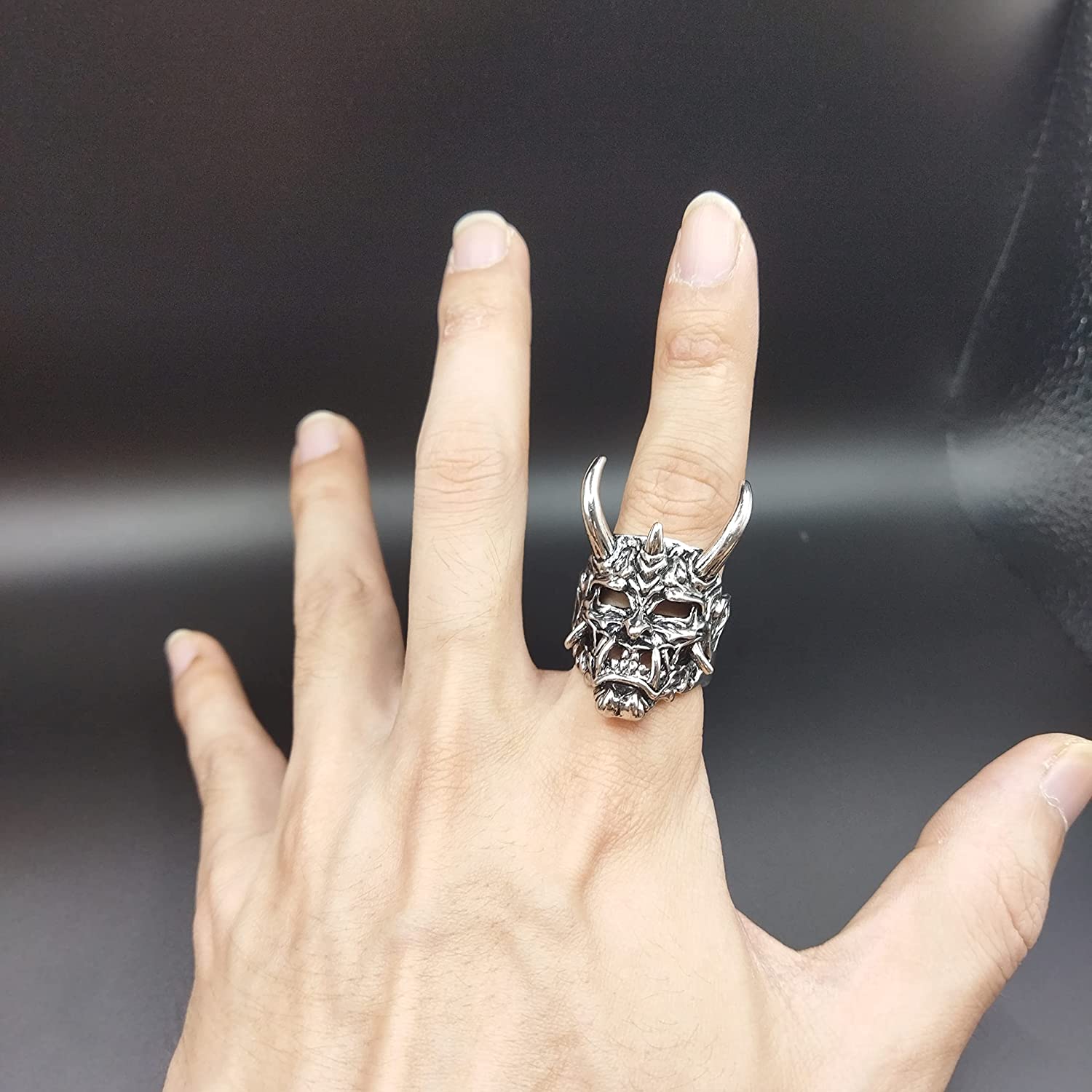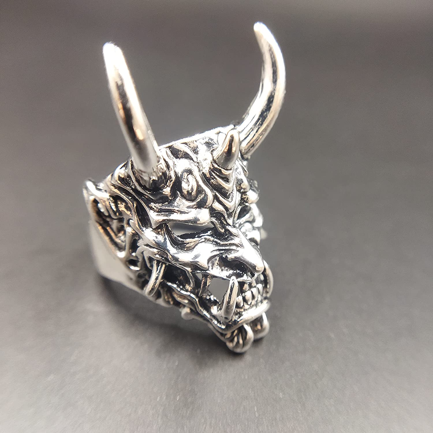 Adjustable Opening Oni Samurai Rakshasa Mask Prajna Ring Men's Jewelry Skull Devil Satan Dark Gothic Style