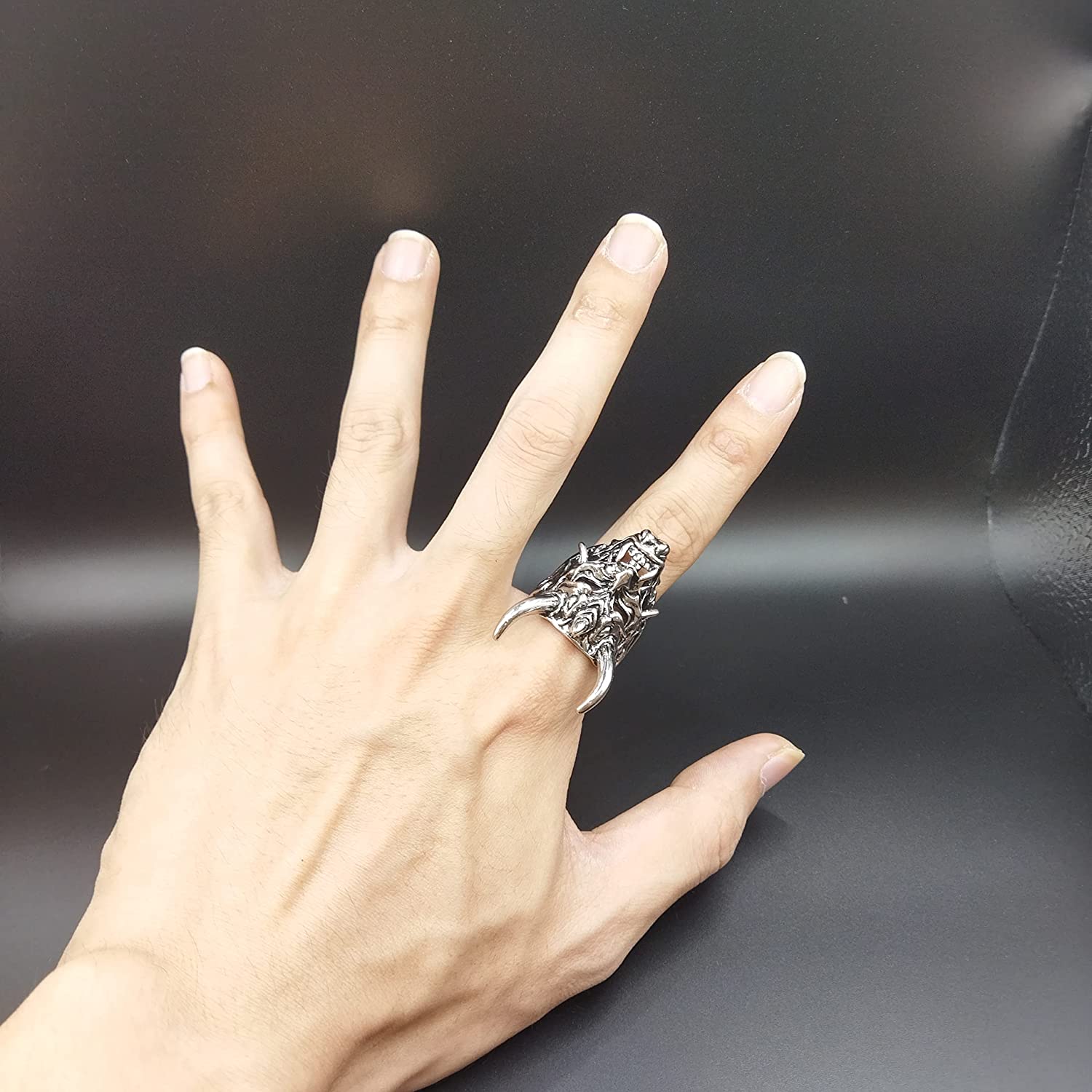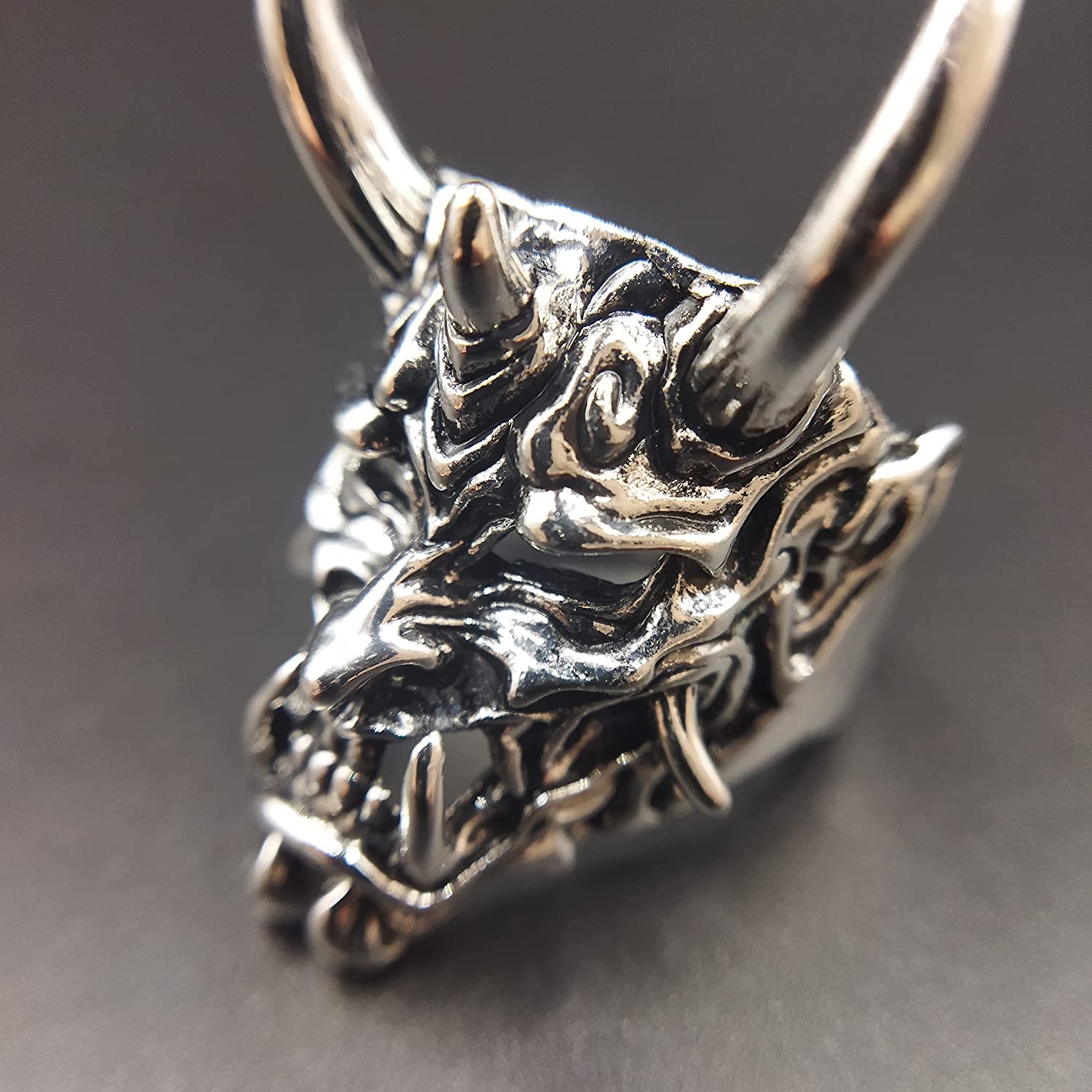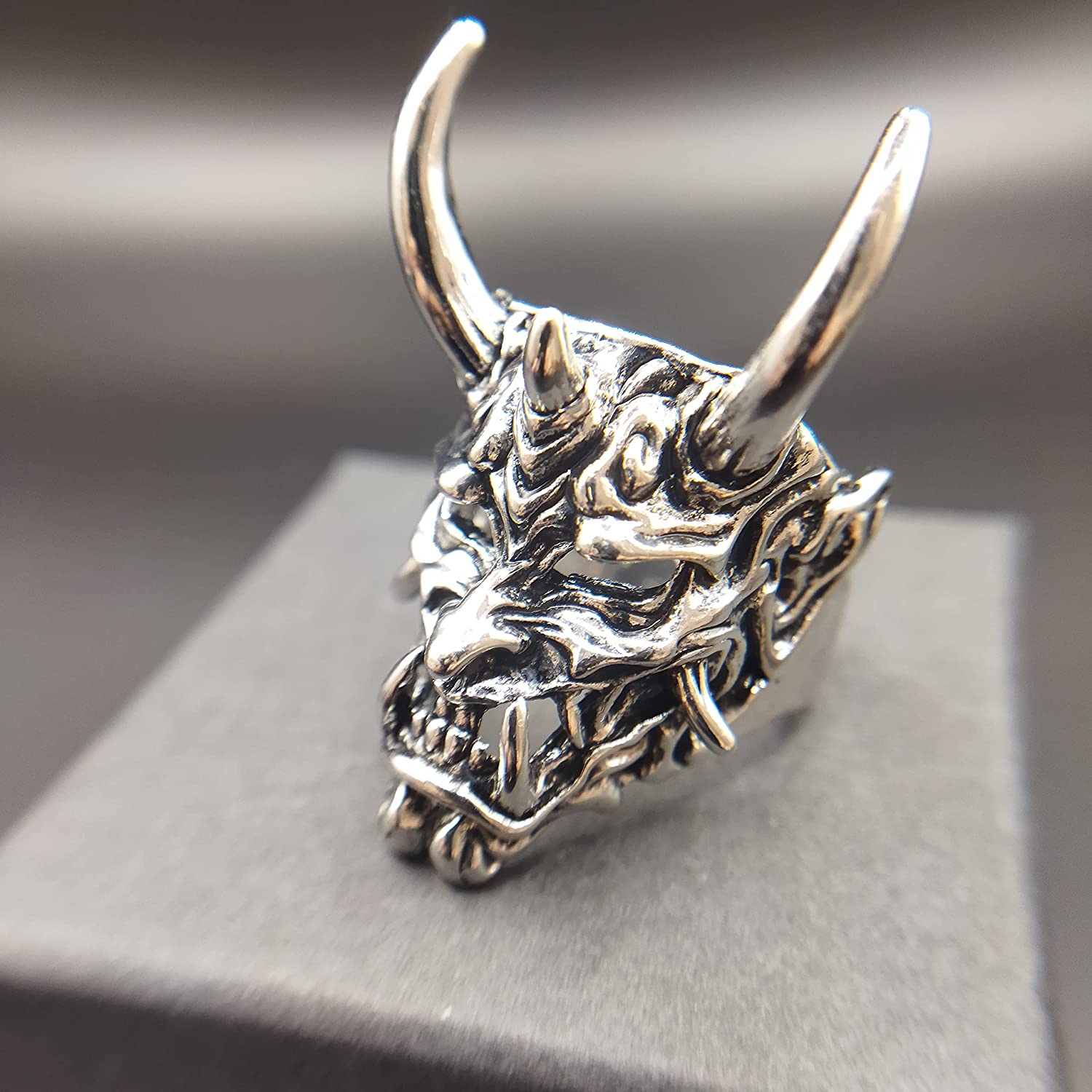 Adjustable Opening Oni Samurai Rakshasa Mask Prajna Ring Men's Jewelry Skull Devil Satan Dark Gothic Style