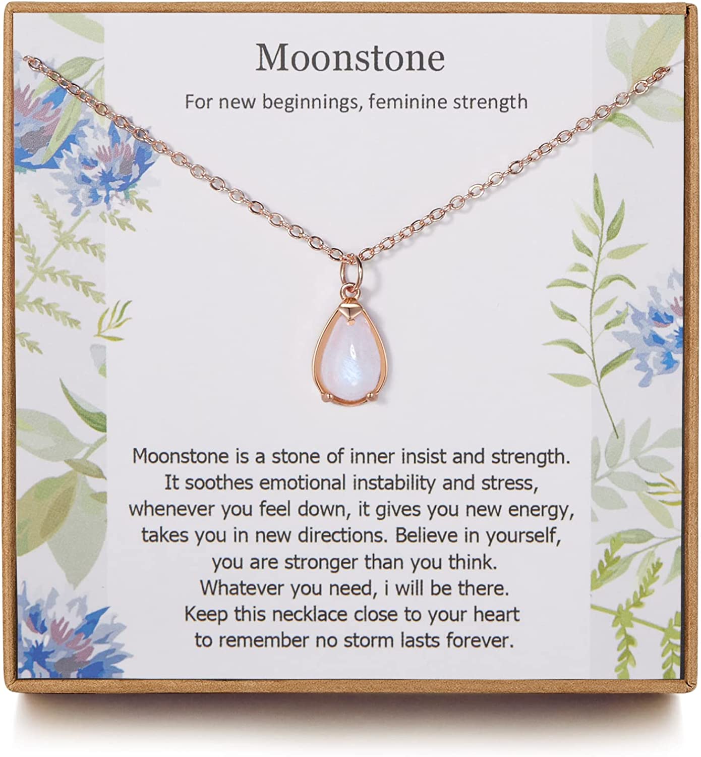 • SIZE: Chain length 18inch + 2inch(adjustable). The pendant is about 0.62 inch across. This length works on practically anyone. A pretty, stylish accessory that shows your care and encourage. Handmade craftsmanship any woman can appreciate. Moonstone symbolize strength, protection, infinite love. It makes a sweet gift for best friend. For a woman, it's the perfect gift to start a new chapter in her story.