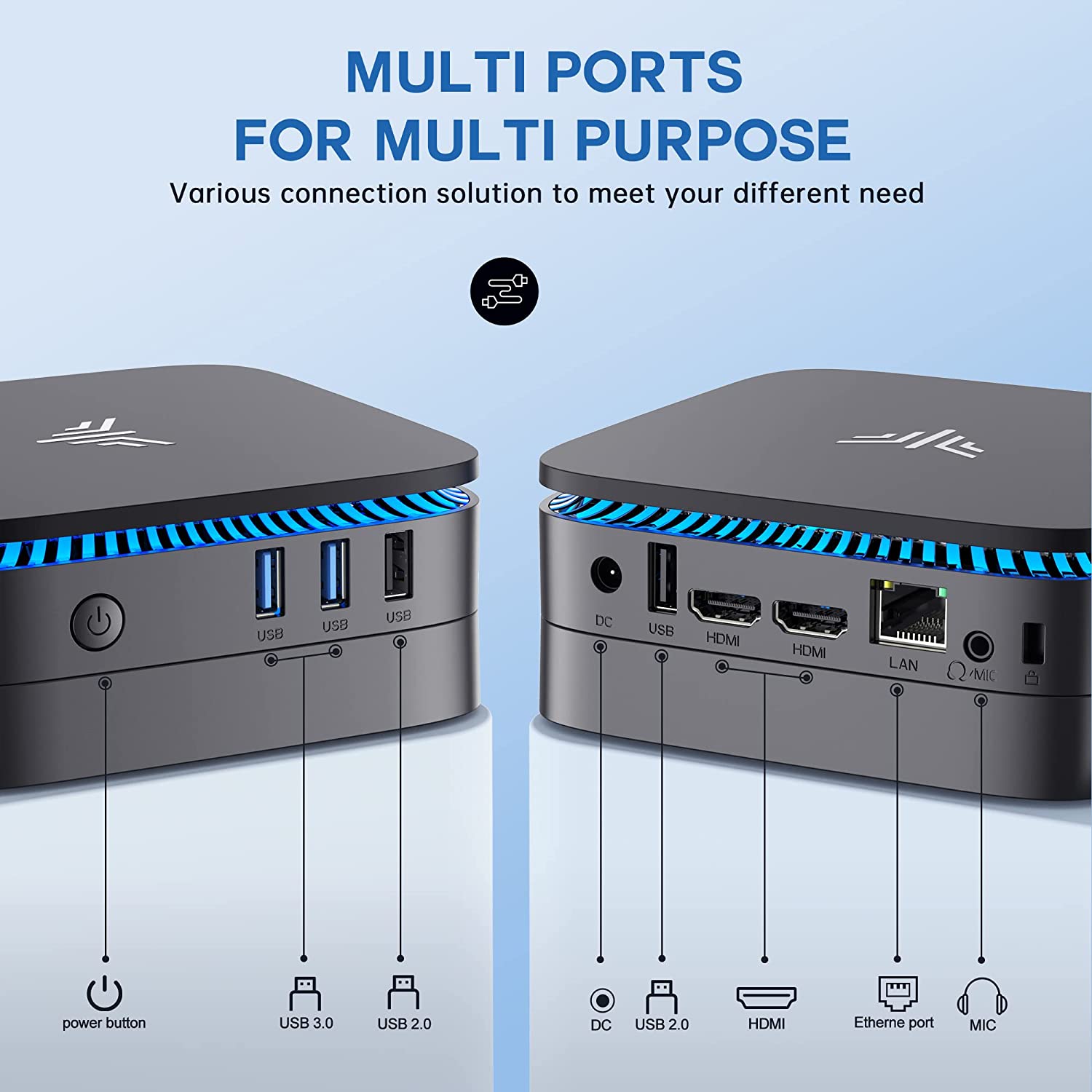 • 【FIND MORE BONUS ON AK1PLUS】With a sleek design that lights up blue when it's on. Looks pretty cool in low lighting. 2.4GHz+5GHz Dual Band WiFi, Gigabit Ethernet, and Bluetooth 4.2 make everything smoother whenever transmission and download. Also, this mini tower computer Linux also supports Linux, PXE, Wake On LAN, RTC Wake, and Auto Power On. Powerful to run more applications like light games, image editing, searching the web, checking email, watching movies, and anything.