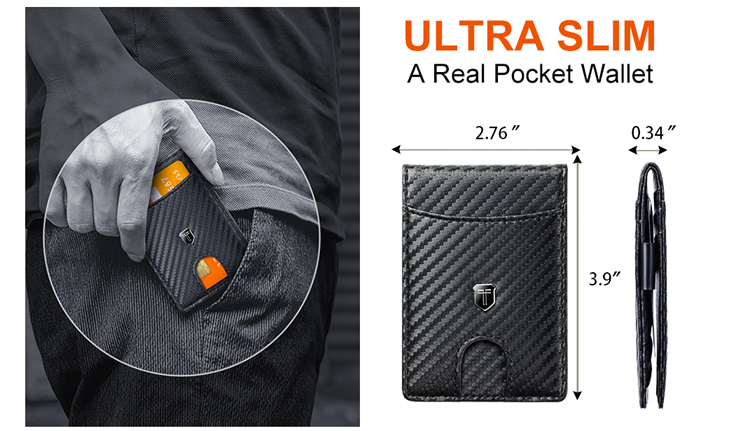 • Ultra Slim & Multifunctional - Best slim wallet which measures only 3.9x2.76x0.34 inches. A slim wallet for men which has enough room for essential cards and cash without being bulky. The pocket in the front for the most used card which can access and get it out quickly. There is also another outside pocket for an ID card so you don’t have to open your whole wallet.