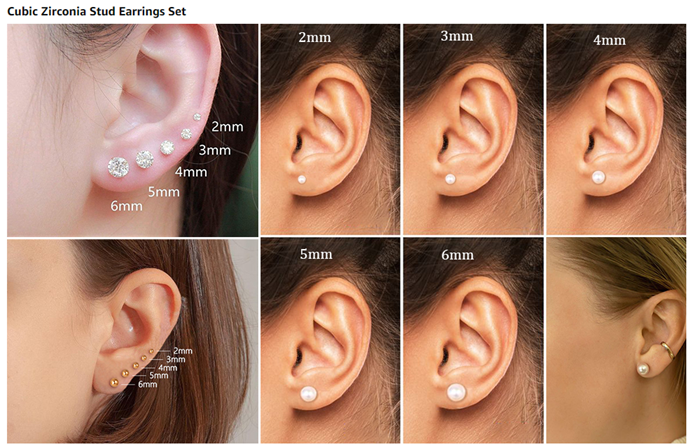 These studs are perfect! With several different sizes included. If you were "cool" and had multiple piercings along your ears, this is the prefect collection of earrings for every occasion.