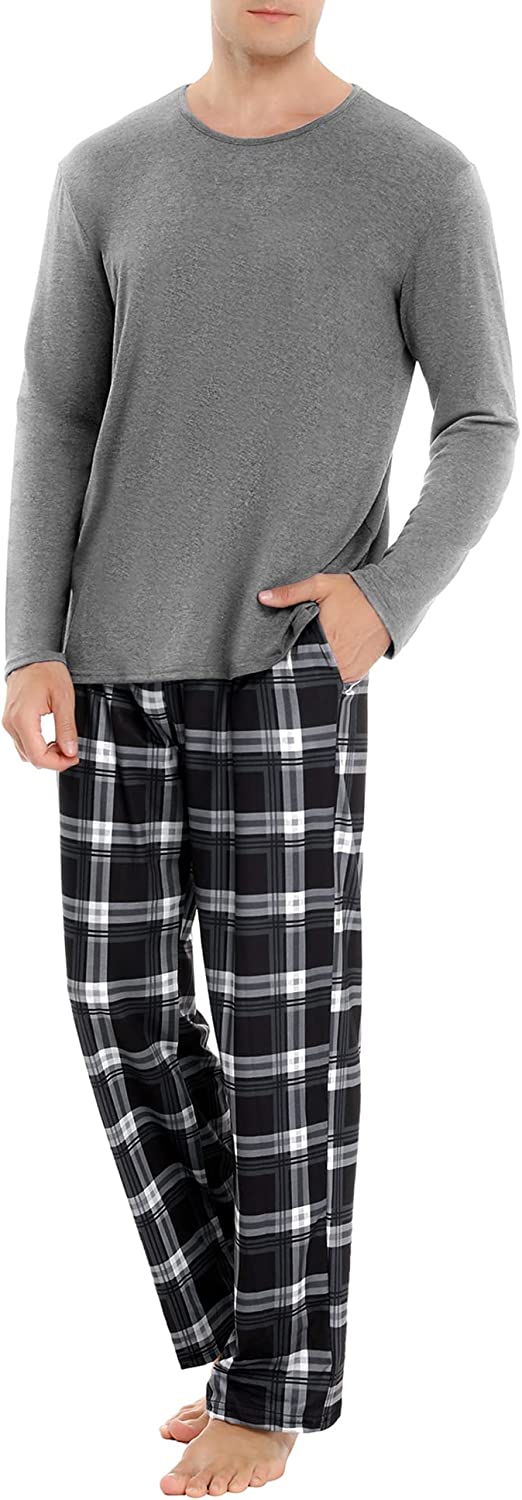 • DESIGN: Our men's pajama set has side pockets, classic plaid; and the elastic, drawstring in waist help you adjust for the best fit.