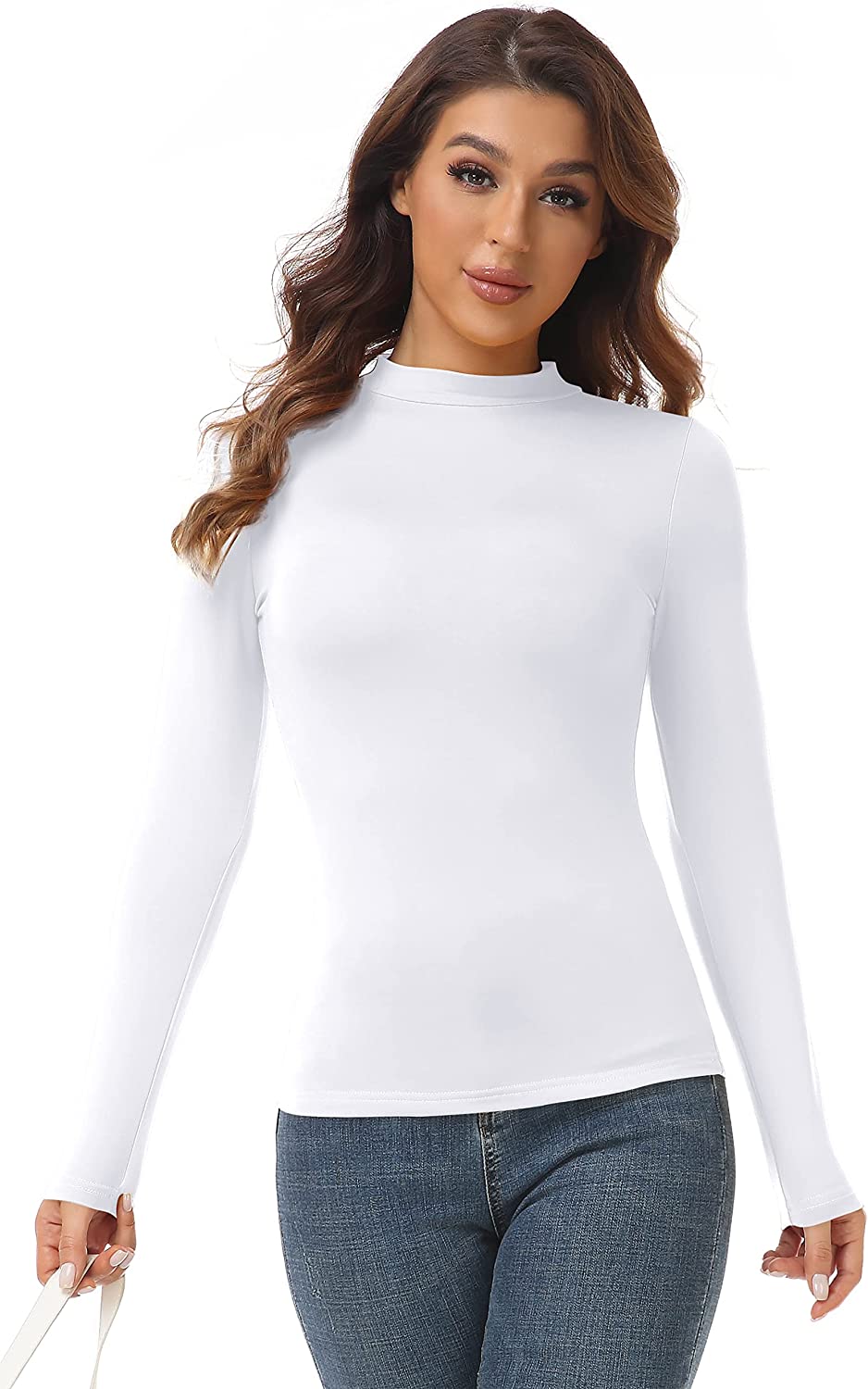 AUHEGN Women's Mock Turtleneck Tops Casual Slim Fitted Long Sleeve Base Layer Shirts