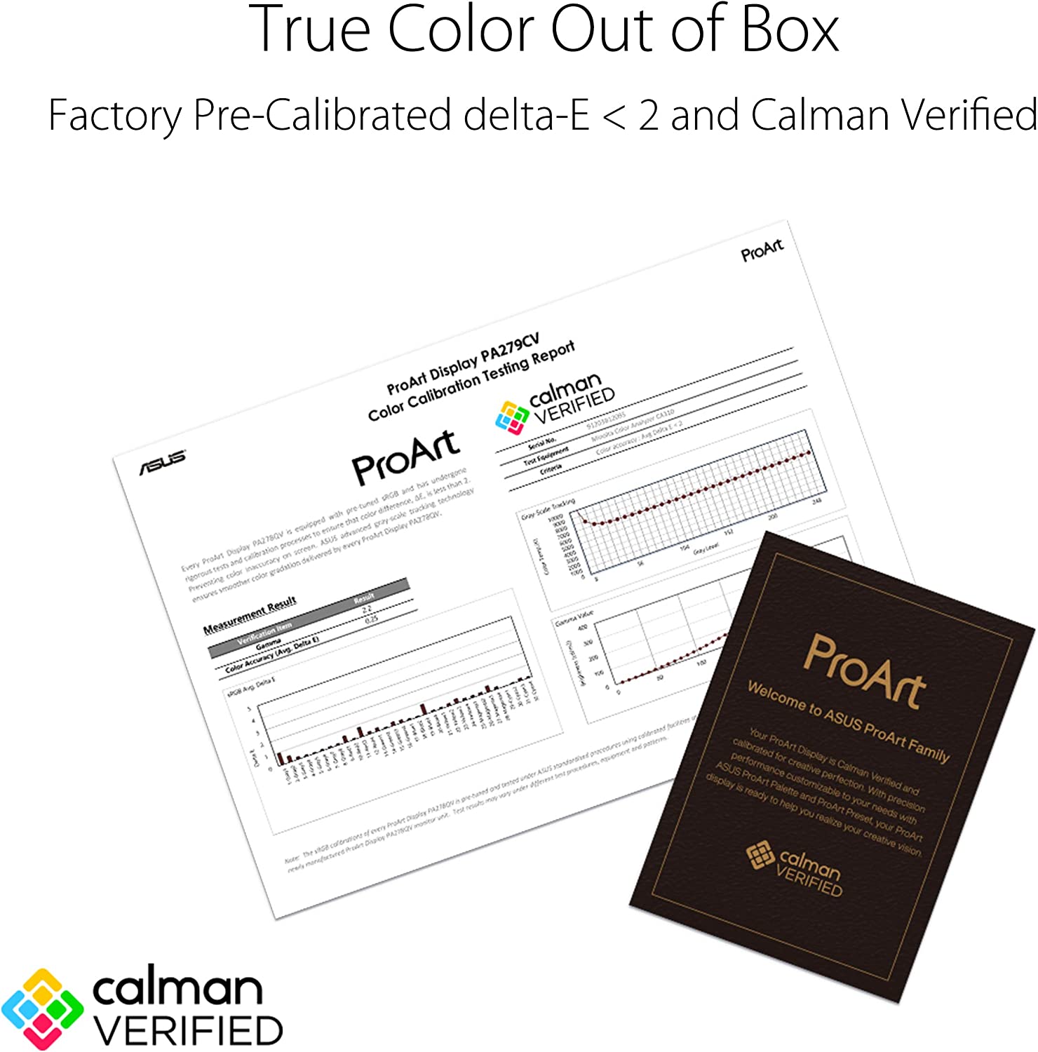 ASUS ProArt Display PA279CV 27” 4K HDR UHD (3840 x 2160) Monitor, IPS, 100% sRGB/Rec. 709, ΔE < 2, USB-C DisplayPort HDMI USB hub, Calman Verified, Compatible With Laptop & Mac Monitor