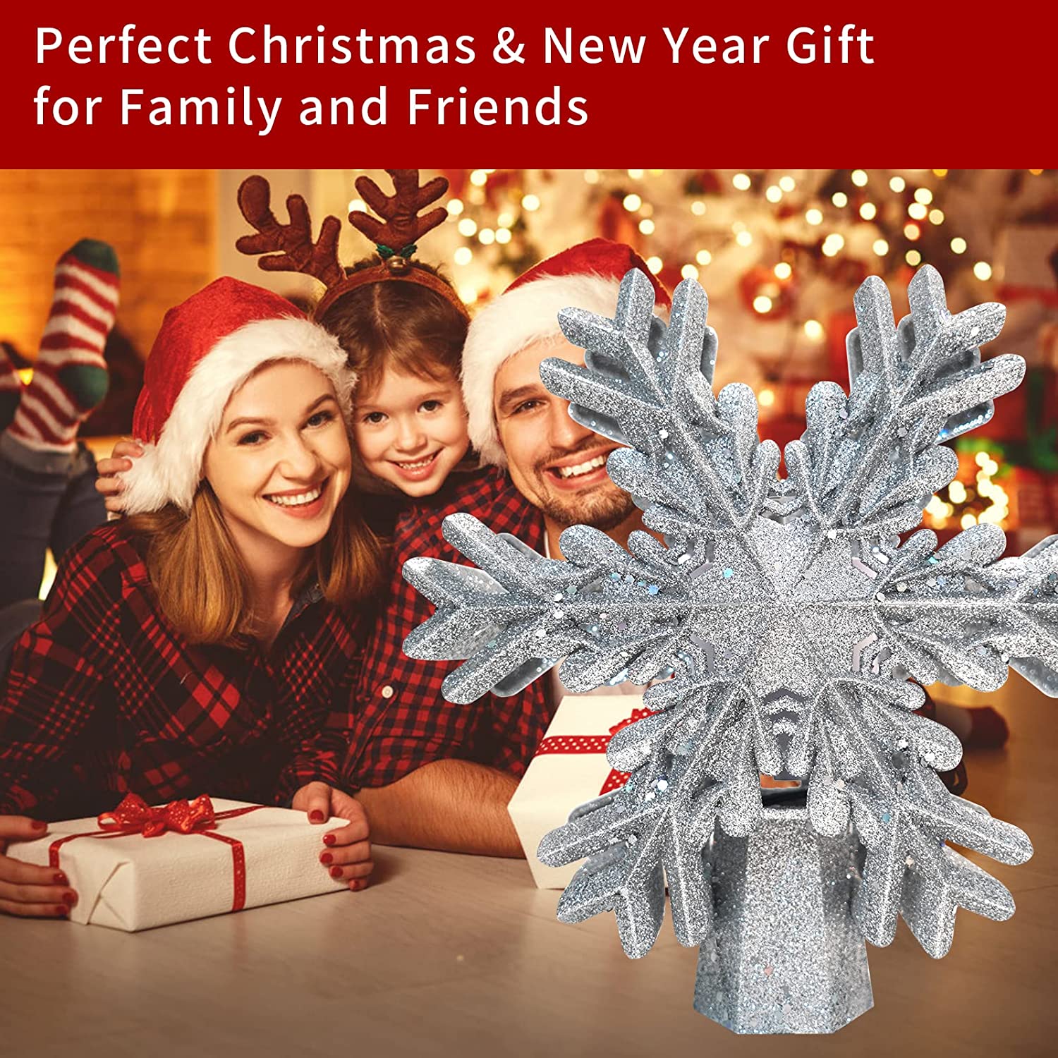 Christmas Tree Topper Projector with Rotating Colorful Snowflake, 3D Hollow Sparkling Xmas Tree Topper for Christmas décor, Plug in Snowflake Topper for Home Holiday Christmas New Year Tree Decorative