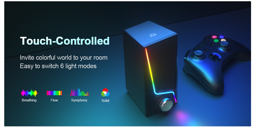- 【Touch Control Lighting】6 touch-controlled lighting modes - symphony, flowing, breathing and 3 solid colors, are designed into the speakers for pc to personalize your desktop, heightening your gaming and listening enjoyment.