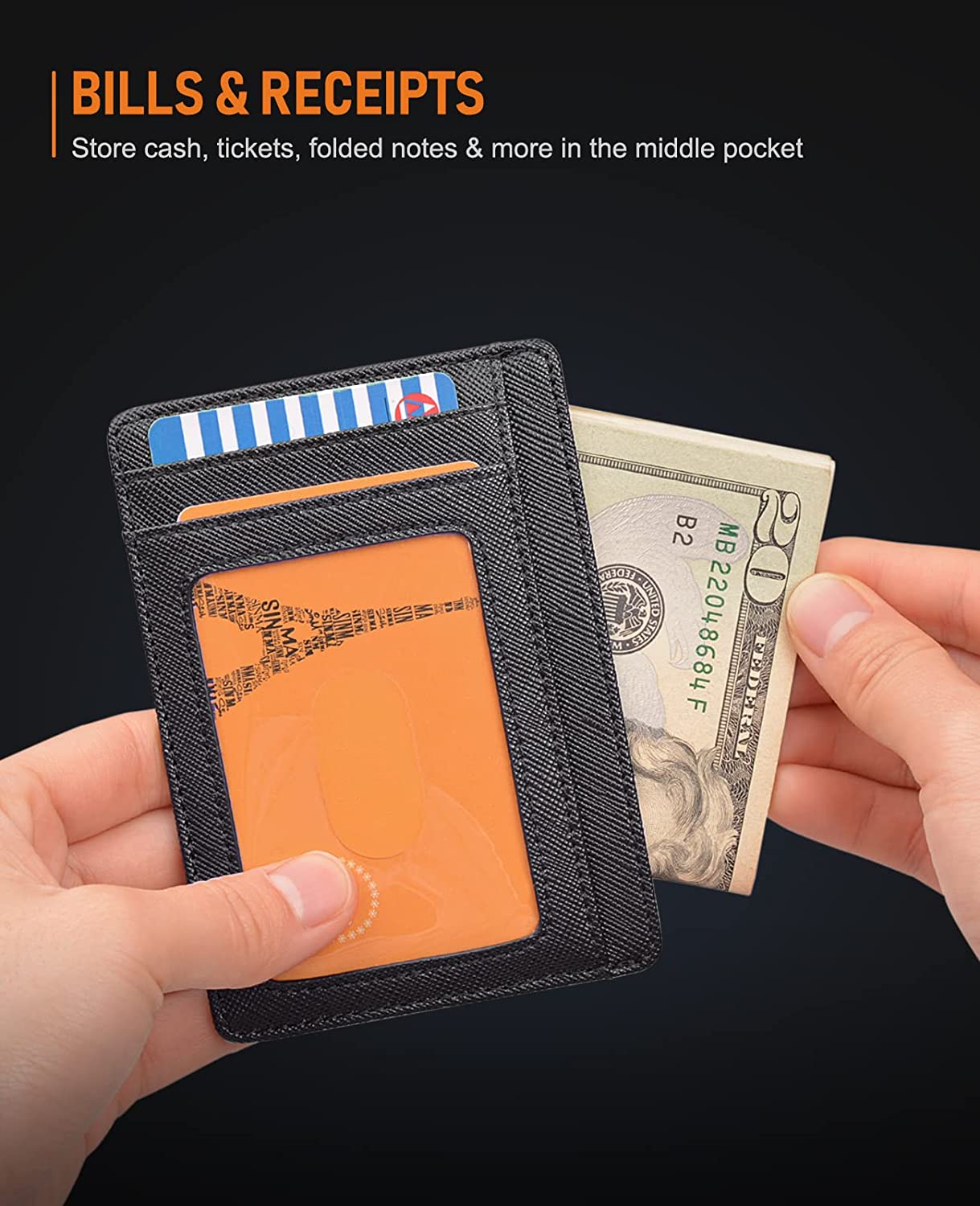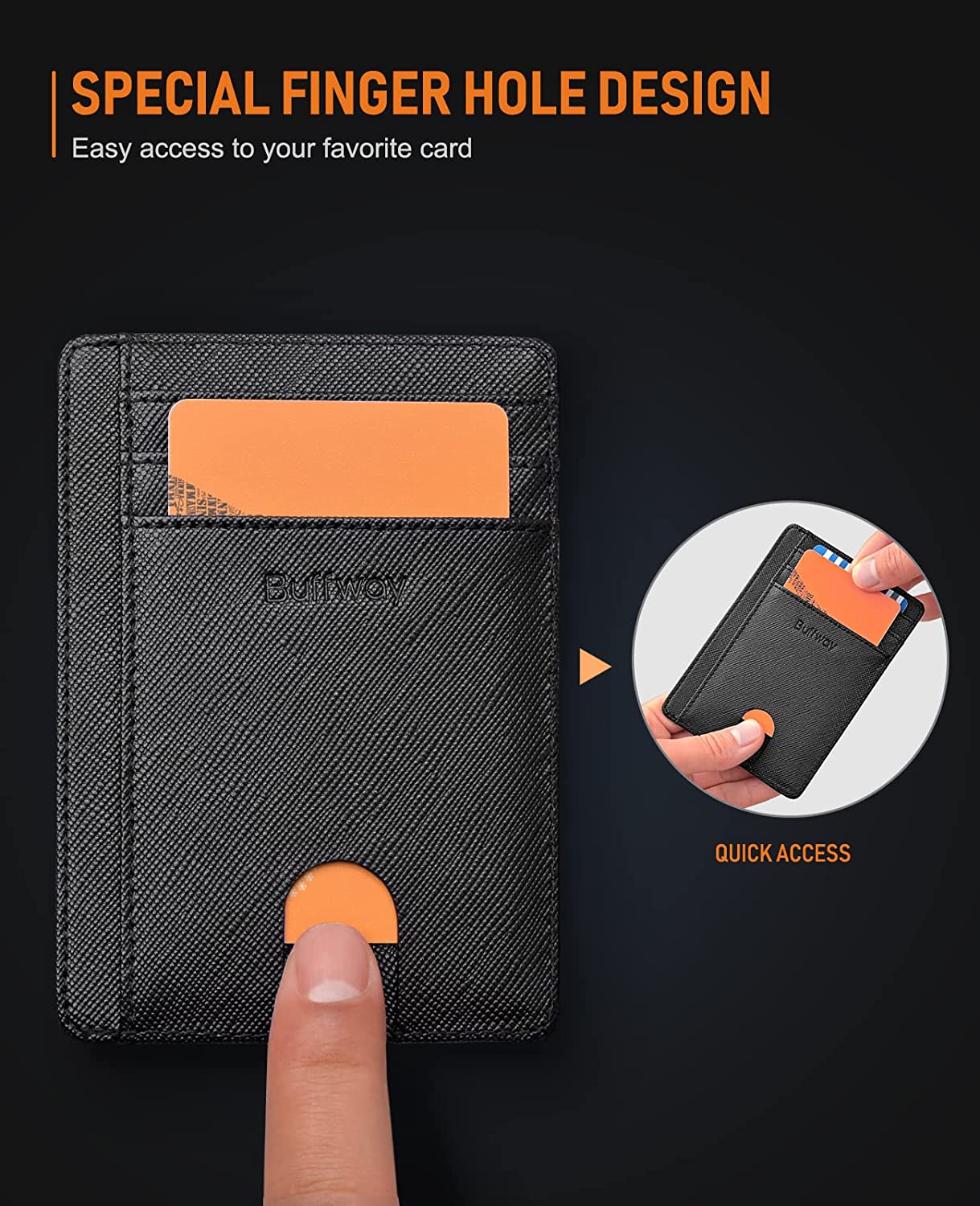 Buffway Slim Minimalist Front Pocket RFID Blocking Leather Wallets for Men Women