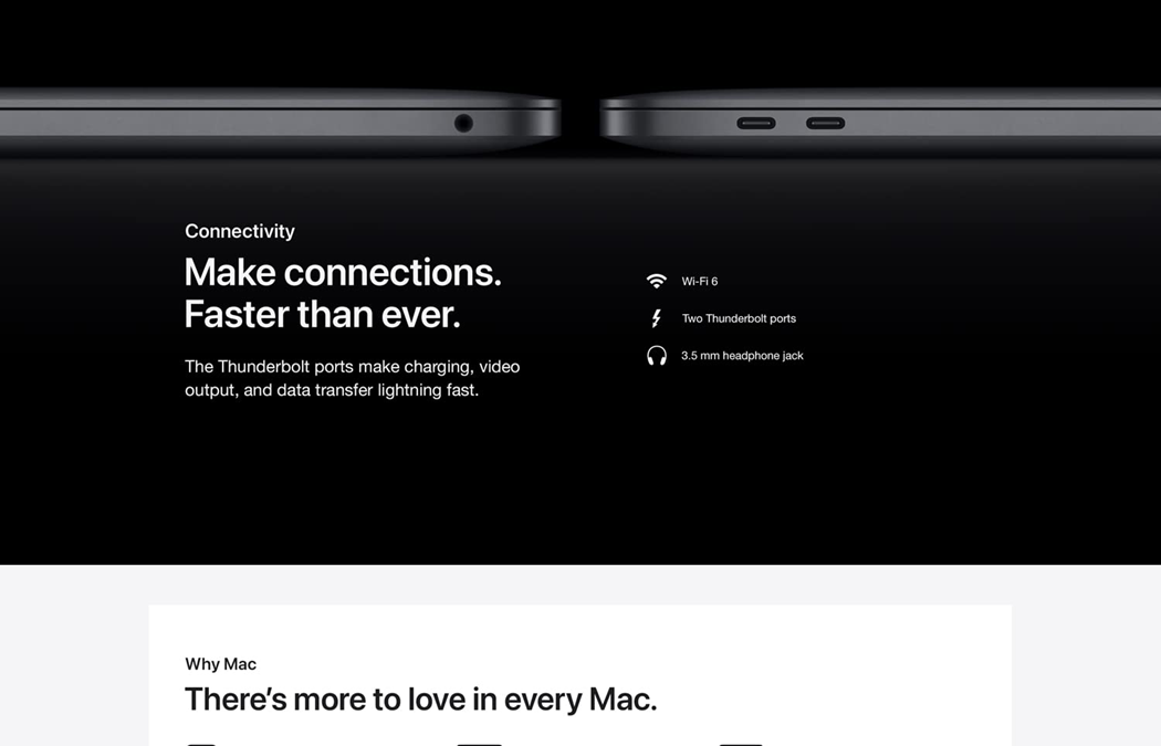 VERSATILE CONNECTIVITY — Two Thunderbolt ports let you connect and power high-speed accessories.