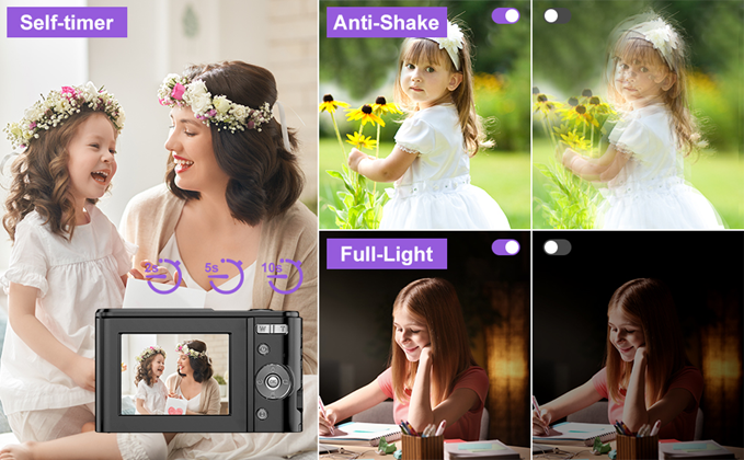 - 【Upgraded Autofocus Digital Camera】 New released autofocus digital camera for teens, when you press the shooting button halfway, it will catch the focus automatically, and after the focus frame on the screen turn green you need press shooting button fully to get vivid macro images, concentrate more on capturing the momentary scene of the subject, this small digital camera is easy to operate to meet the needs of kids teenagers students elderly.