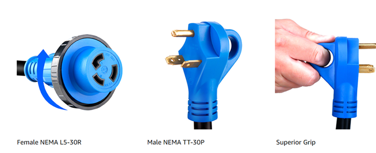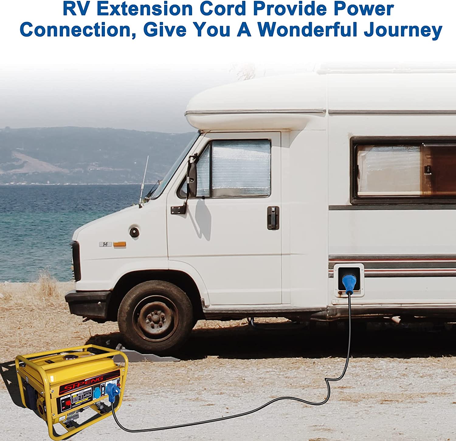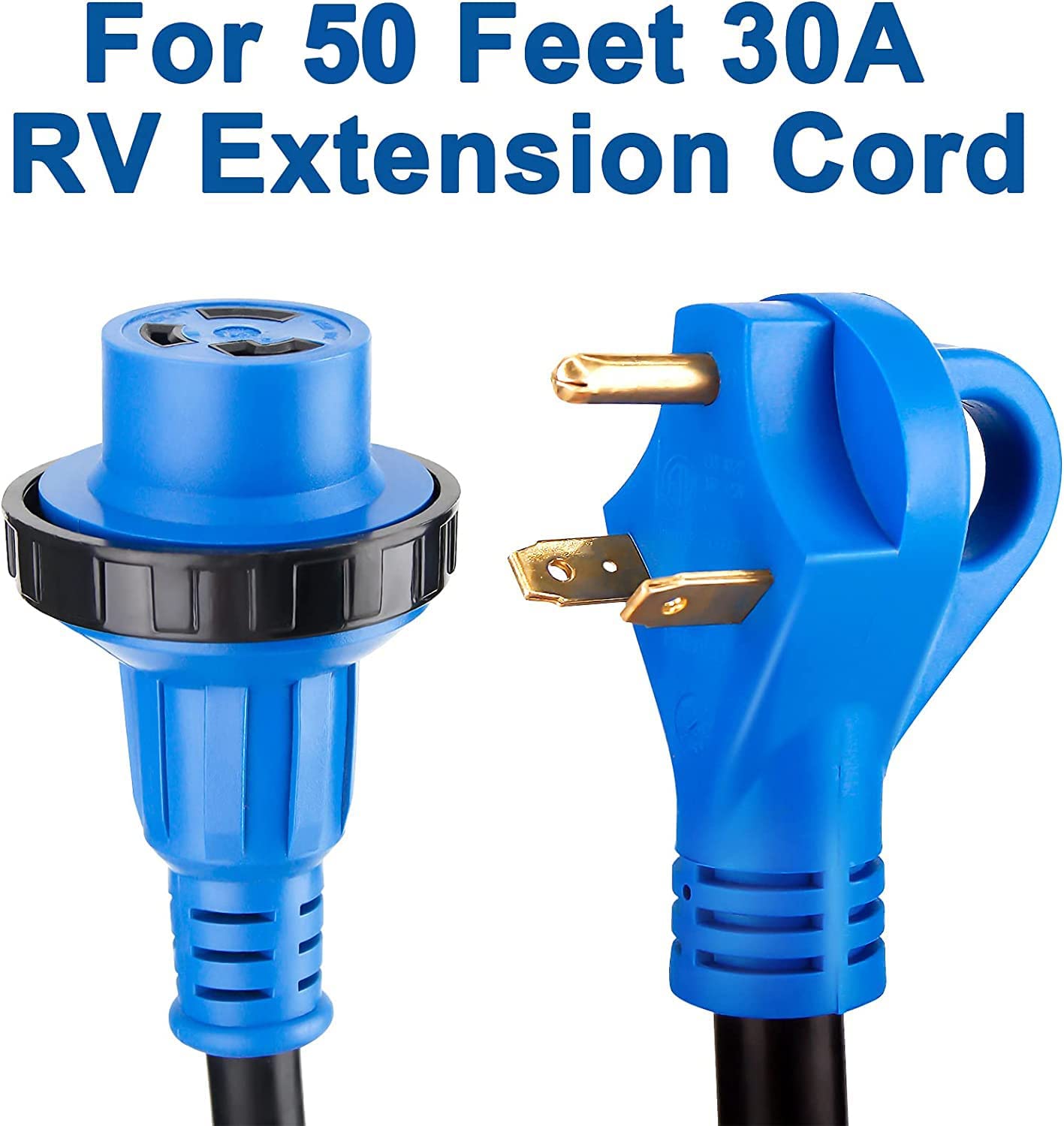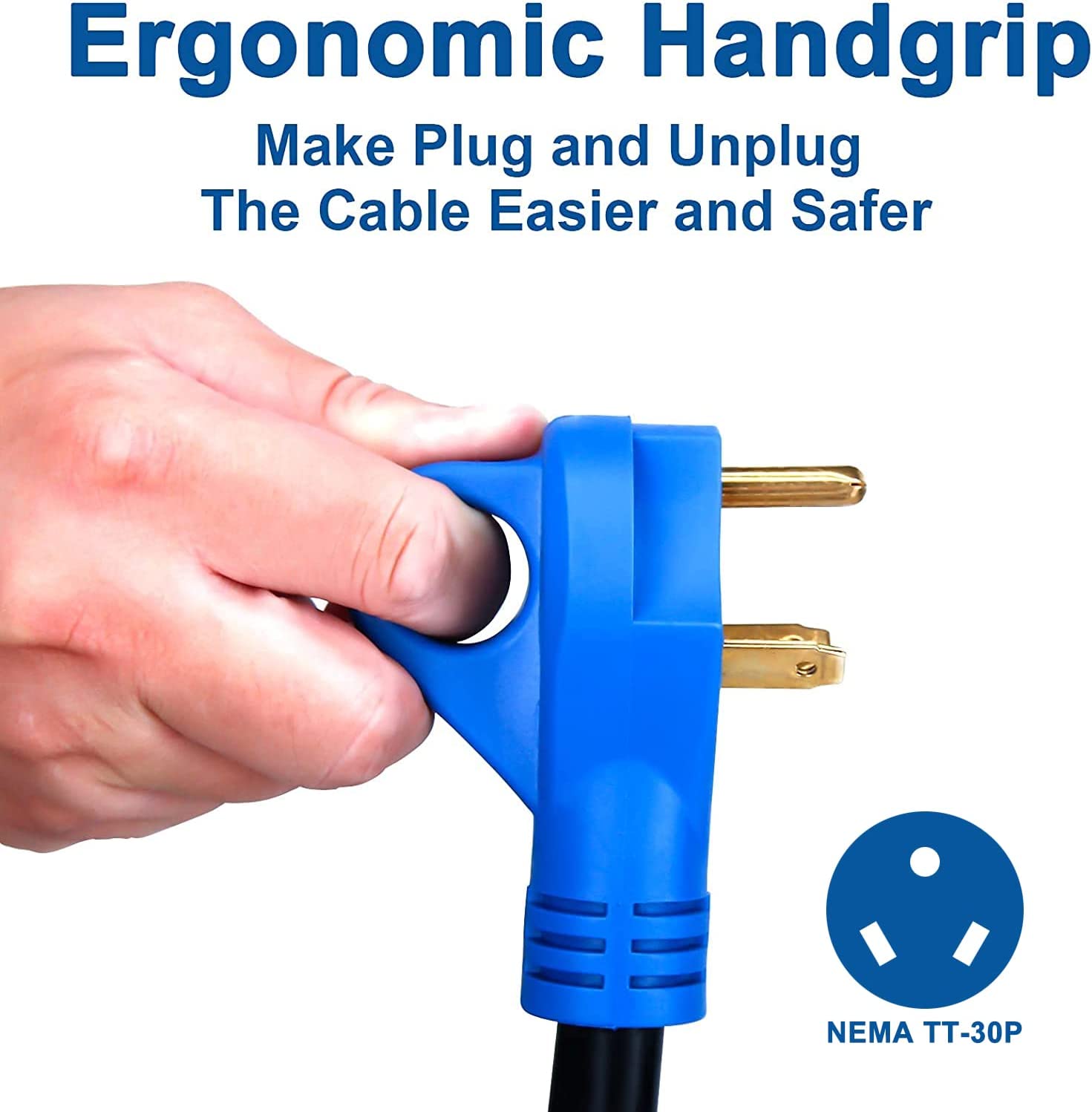 • ⚡【GRIP HANDLE】Equipped with an easy grip handle to make plugging and unplugging this cable easier and safer for you. The RV power extension cord is in black cable blue handle