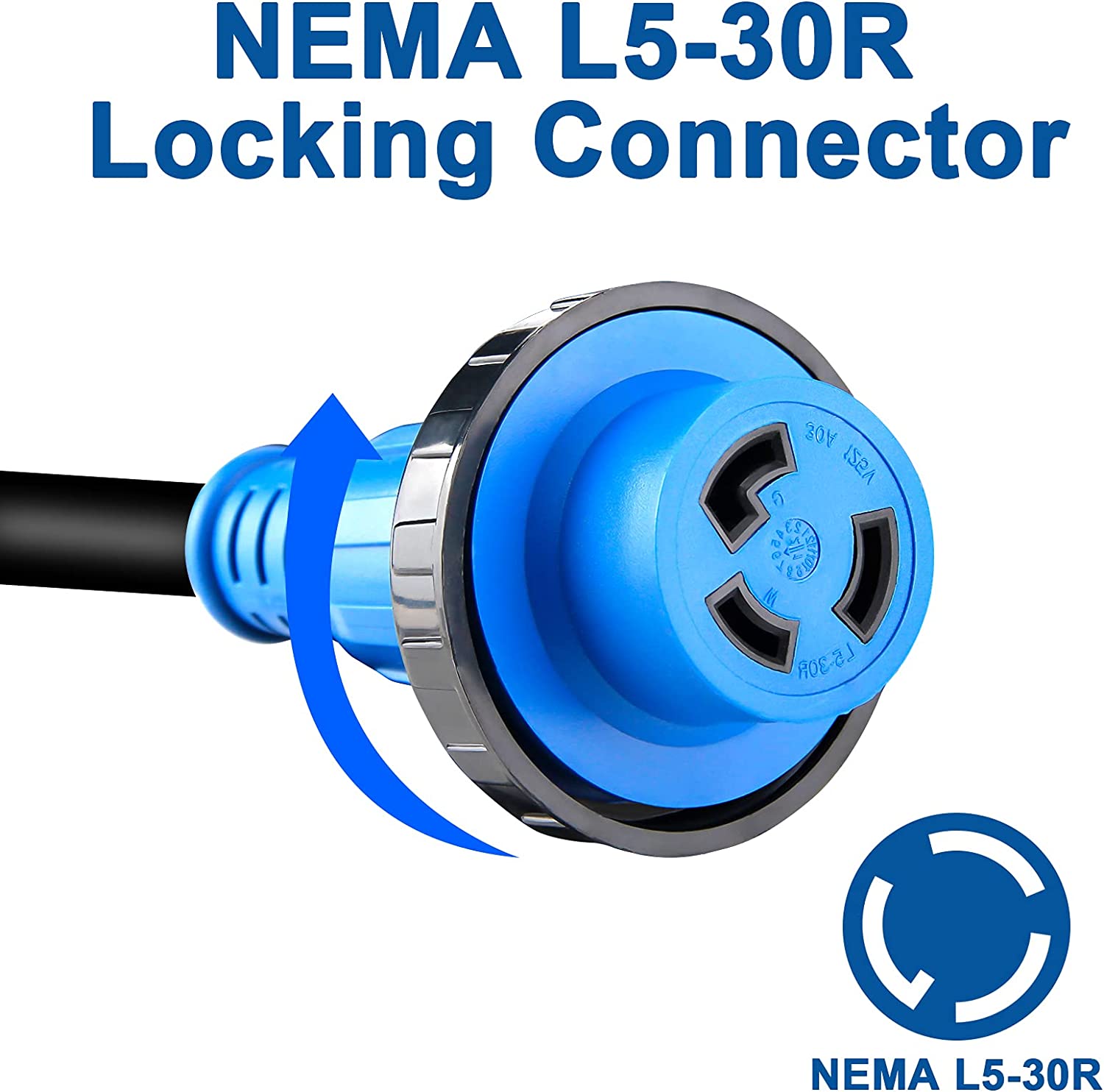 • ⚡【ELECTRICAL RATING】30A, 125V, 50 feet, STW power cord with TT-30P male plug and L5-30R female receptacle. ETL/cETL approved