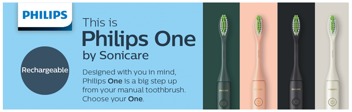 Philips One by Sonicare is an ultra-portable electric toothbrush that keeps your smile bright. Always be ready to touch up your smile, no matter where the day takes you. VALUE ADDED. Brush Head Bundle includes 3 total brush heads. Subscribe & Save on genuine Philips One brush head replacements and save up to 15%.