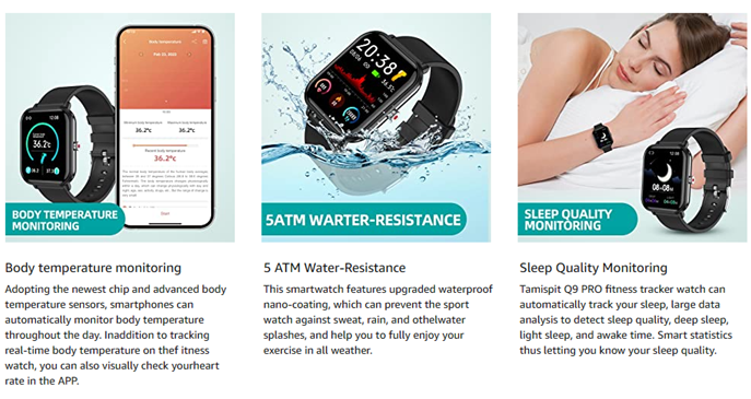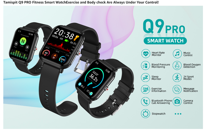 • 【Multi-Function Smart Watch】: The Q9 PRO smartwatch fitness tracker can provide all-around body data tracking, allowing you to accurately track 24-hour bady data and stress levels. Automatically monitor your sleep (Deep sleep, Light sleep, Awake time)to tell you how long you sleep during the night. sleep, Light sleep, Awake time)to tell you how long you sleep during the night.