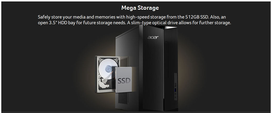 • 12GB 3200MHz DDR4 Memory | 512GB M.2 2280 NVMe SSD | 8X DVD-Writer Double-Layer Drive (DVD-RW)