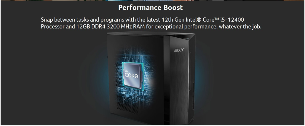 Acer Aspire TC-1760-UA92 Desktop | 12th Gen Intel Core i5-12400 6-Core Processor | 12GB 3200MHz DDR4 | 512GB NVMe M.2 SSD | 8X DVD | Intel Wireless Wi-Fi 6 AX201 | Bluetooth 5.2 | Windows 11 Home