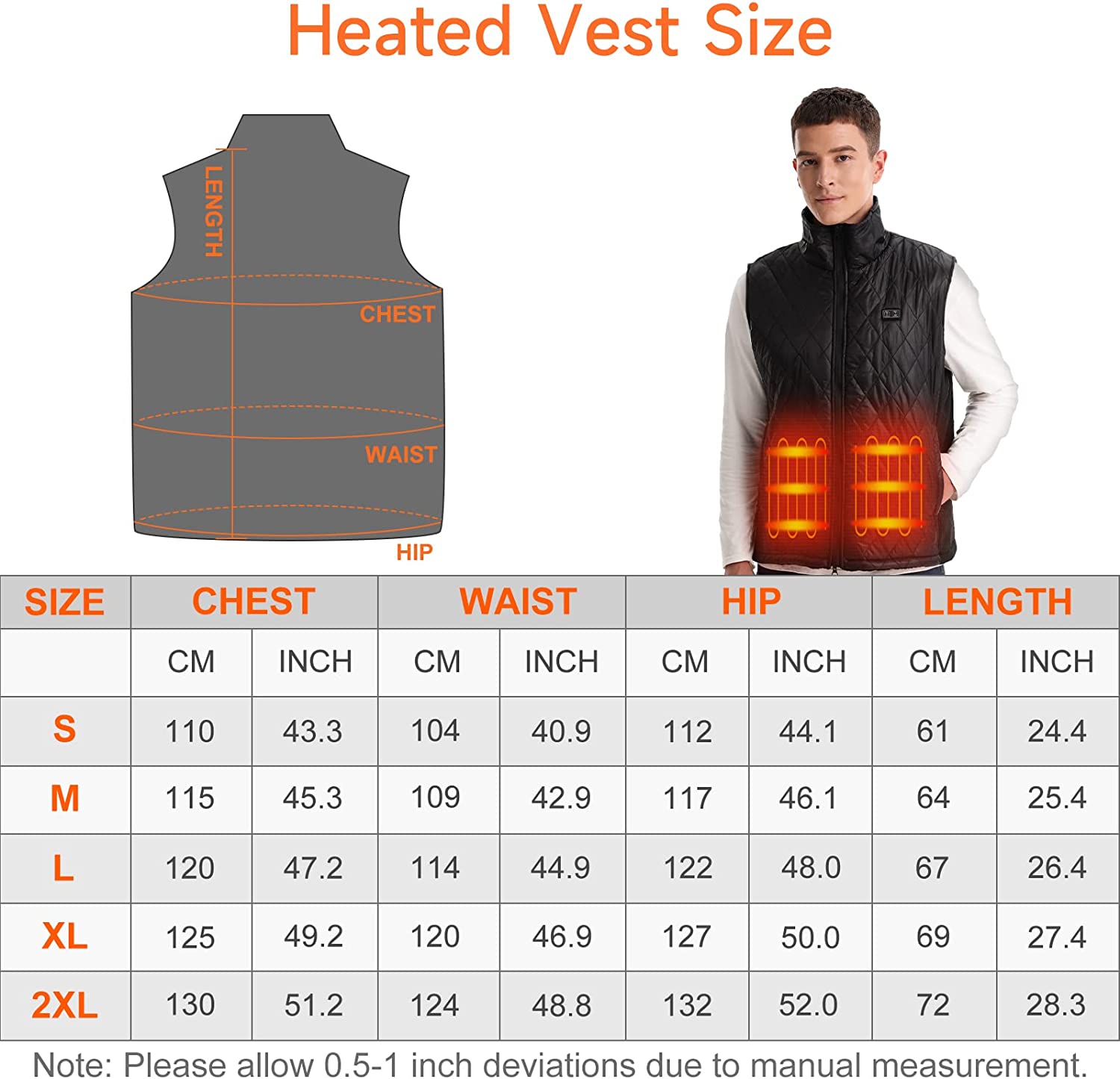 - Customer Service -Please check the size chart before purchasing, if you don't know what to choose, please contact us via email. Any questions with our heated vests , please feel free to contact us via email, we will do our best to help you solve the problem in 24 hours.