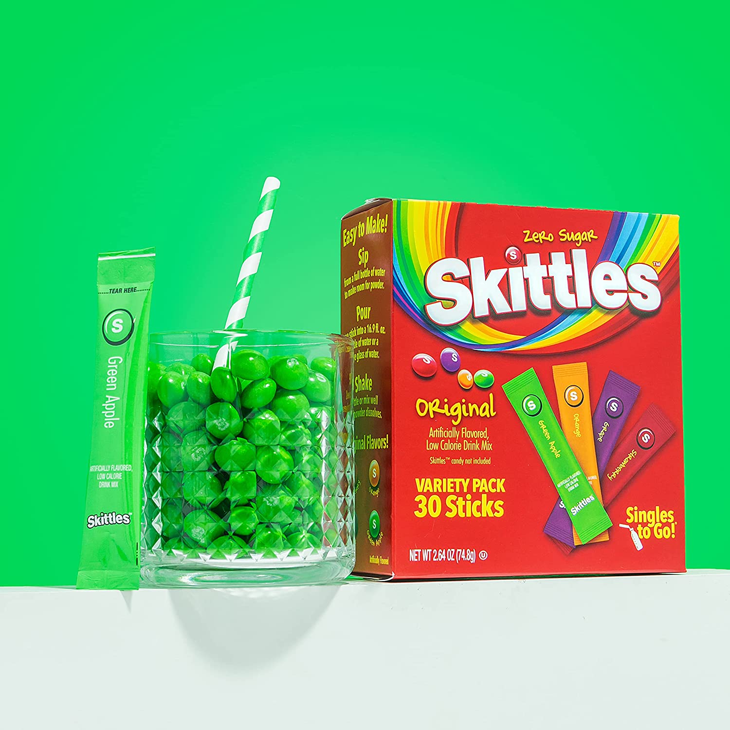 CONVENIENT –With these conveniently packaged single drink mix sticks, you can take the great taste of Skittles Candy with you anywhere you go!