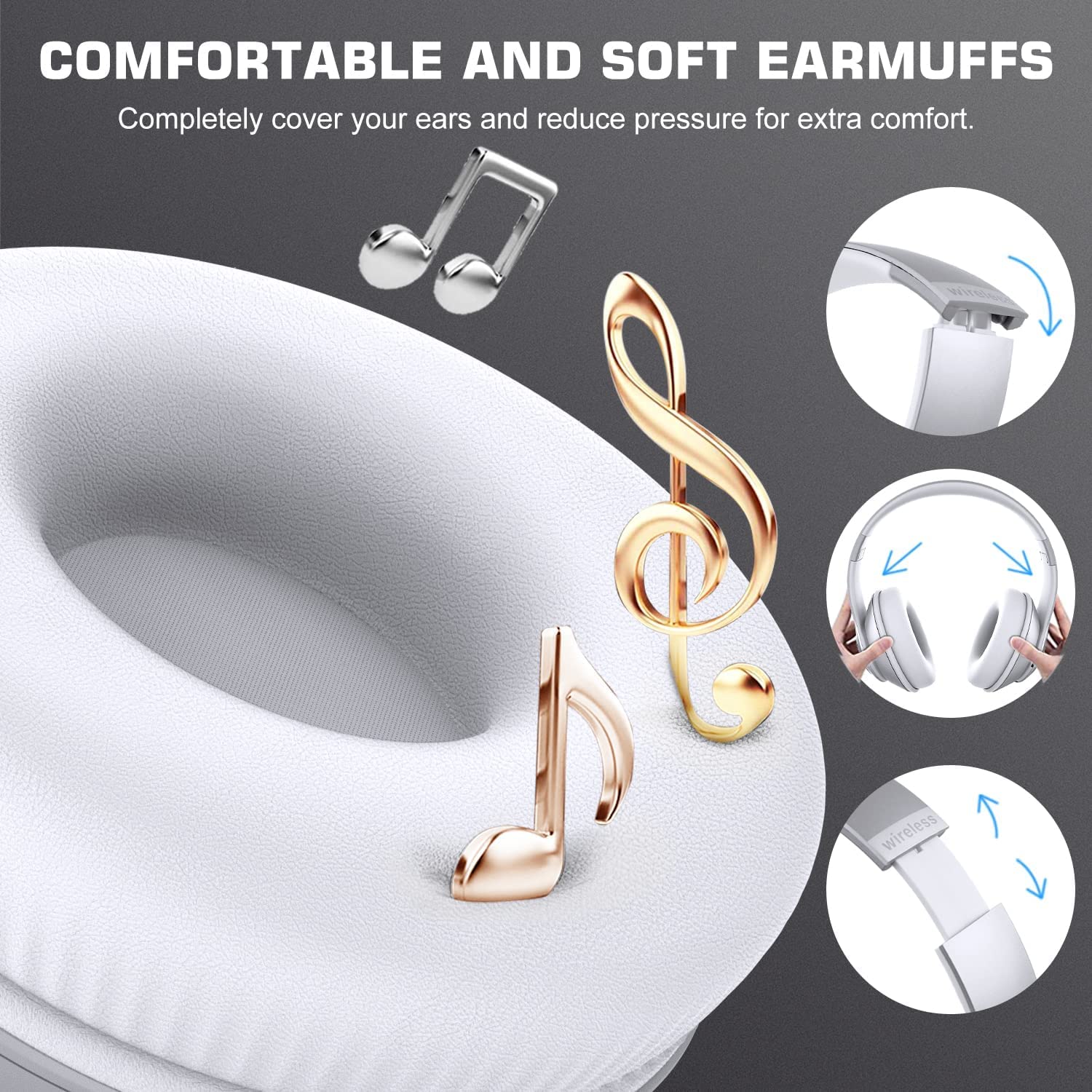 • 【UP TO 60 HOURS OF PLAYTIME】With up to 60H Playtime of our headphones with microphone in Bluetooth mode, triple as much as other Bluetooth headphones, you'll always have music to inspire you. Come with a 3.5mm audio cable, when the power is low, you can switch to wired mode and enjoy your music NON-STOP. Don’t worry about power shortage problem for the long travel.