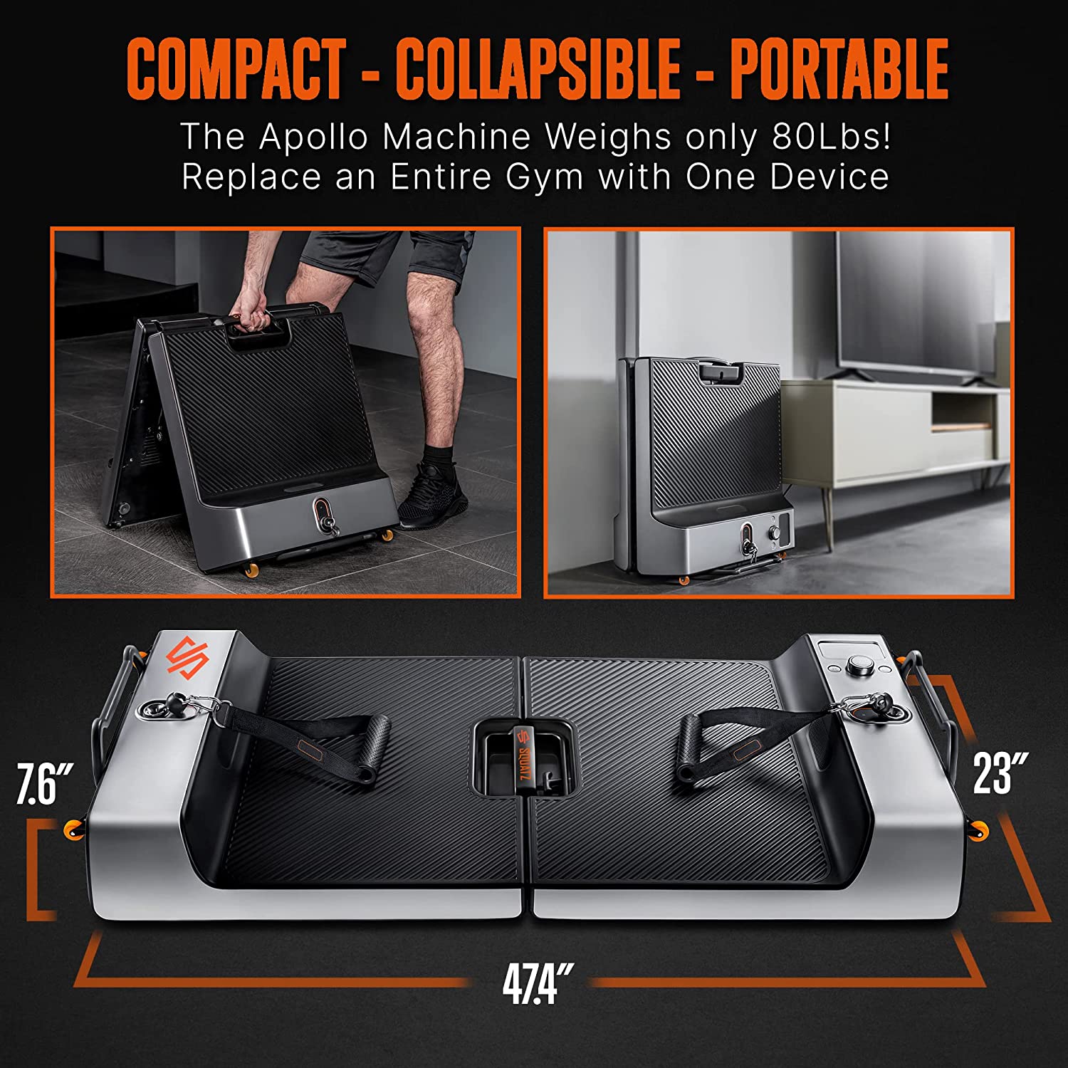 NEW UPDATES MORE RESISTANCE: The New Apollo Board functions as 5 Industrial Cable Gym Machines in One Compact Device. It replaces home weights, dumbbells, and stationary gym equipment. No installation. No assembly. 288 lbs of total resistance.