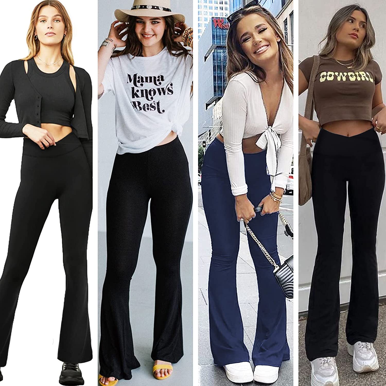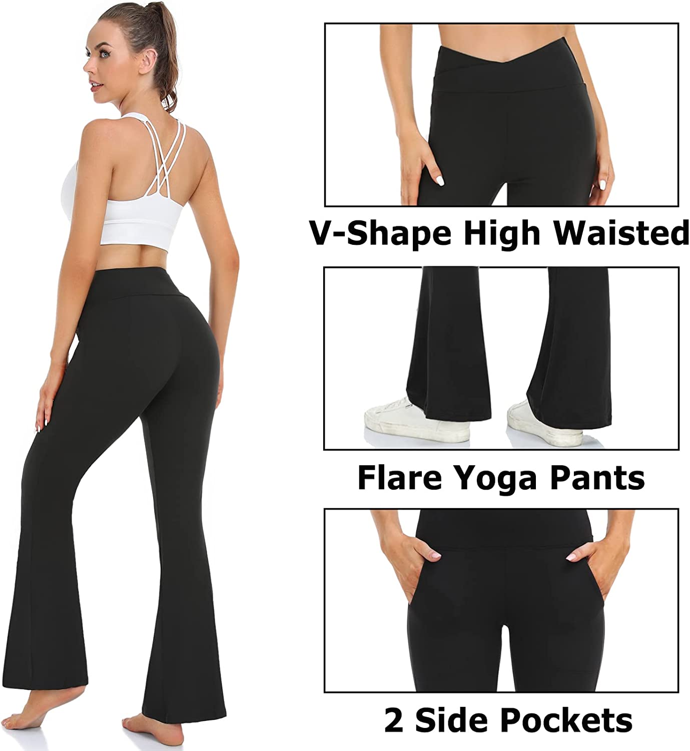 Super Flare&Crossover Design: Flare Leg allow you to move without restriction, effectively helps hide the defects of the calf, and creates the contour and slender appearance of the popular line.The 4.5" wide elastic waistband and a v-seam design which perfectly reveals the navel,trim the waist line and visually elongate the waist ratio.Suitable for ladies of all body types.