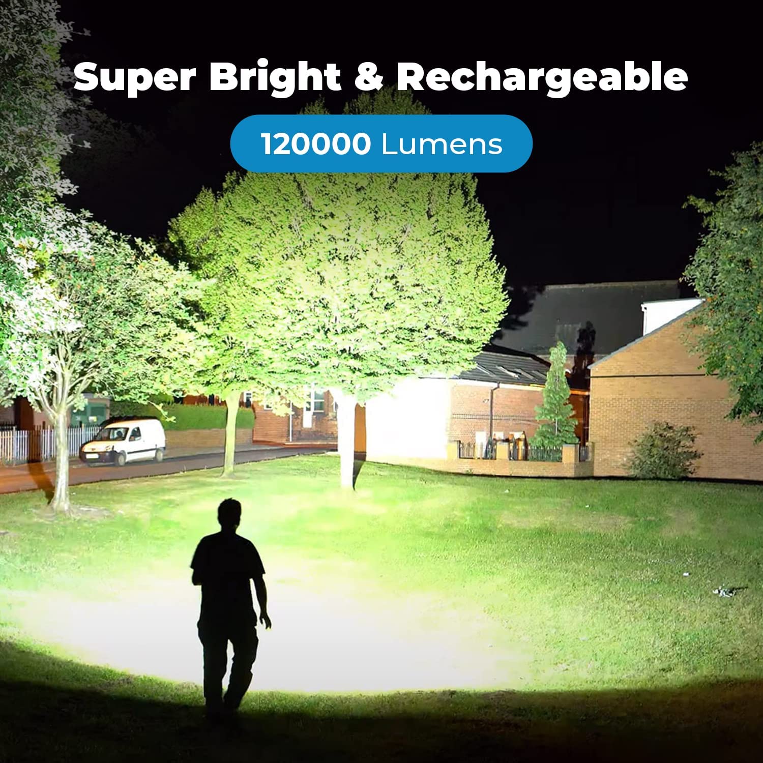 Rechargeable Flashlights High Lumen 2 Pack, 120000 Lumens Super Bright 5000mAh High Capacity LED Flashlight with 5 Modes, Powerful Handheld Flash Light for Camping Emergencies,Waterproof,Zoomable
