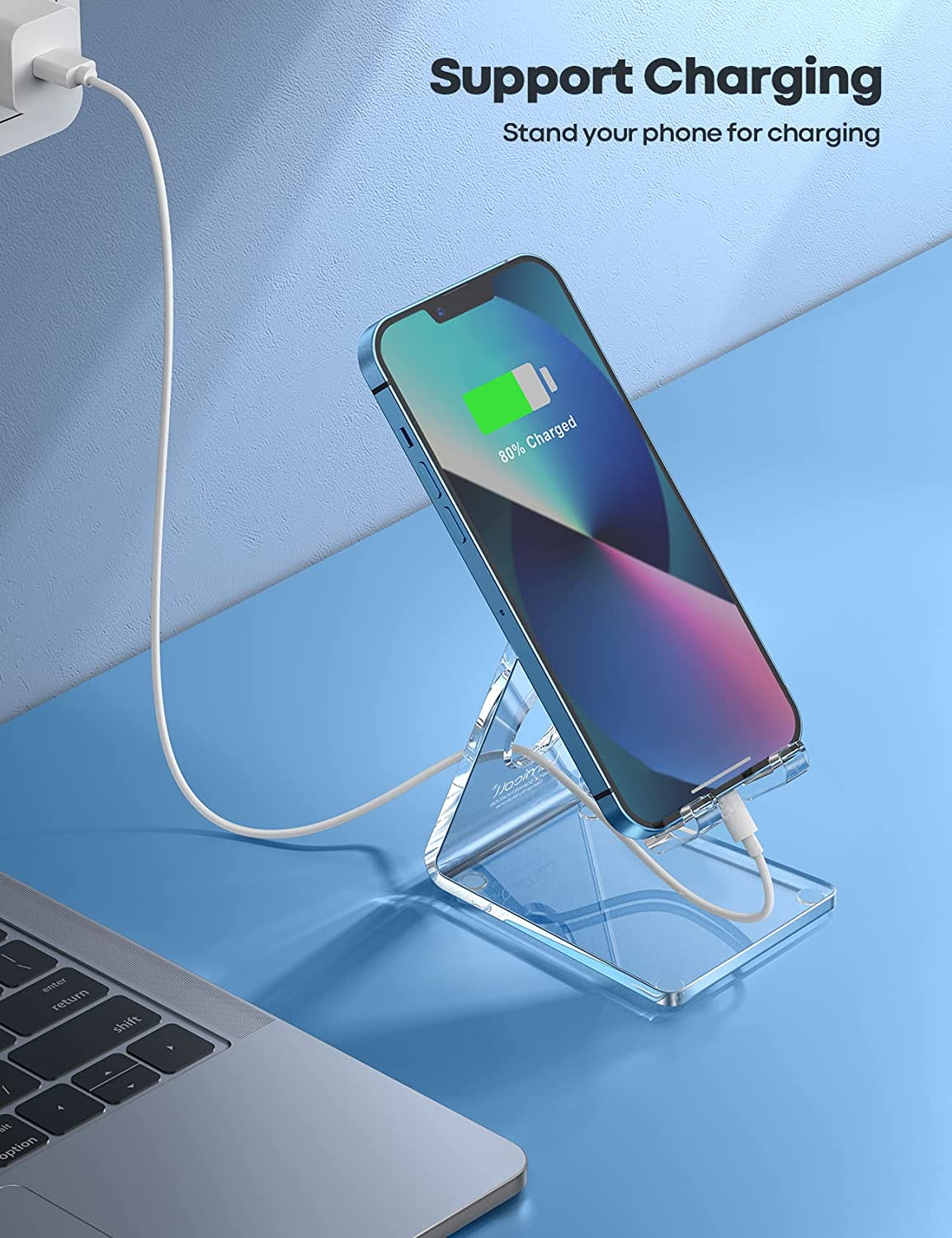 • 【High Quality Acrylic Material】Using acrylic material, strong and excellent durability. It is a fashionable design that decorates any environment. Keep your desk clean by tidying up cluttered cords. Stable and easy to watch Youtube or FaceTime. Besides, rubber non-slip pads protect the surface of your phone case and desk from scratches.