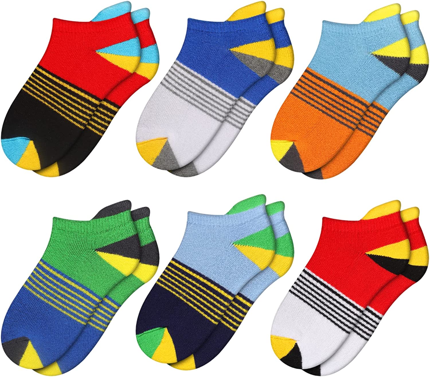 Comfoex Boys Socks Ankle Athletic Socks For Kids 4-6 6-8 8-10 Years Old Short Cotton Half Cushioned Socks 6 Pairs