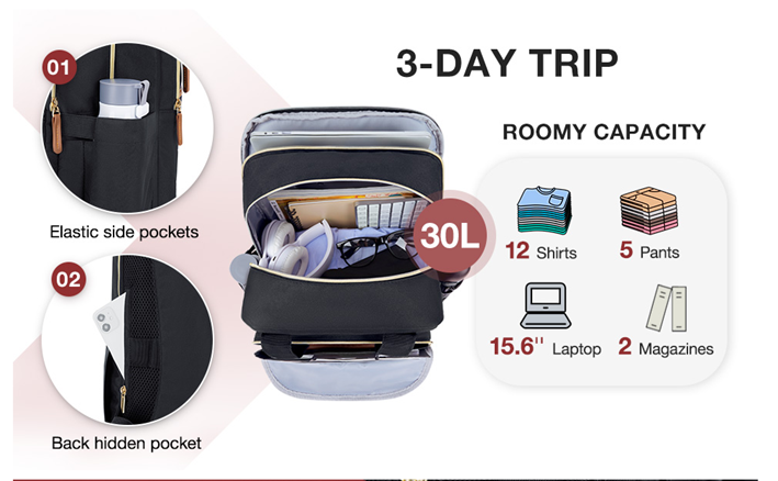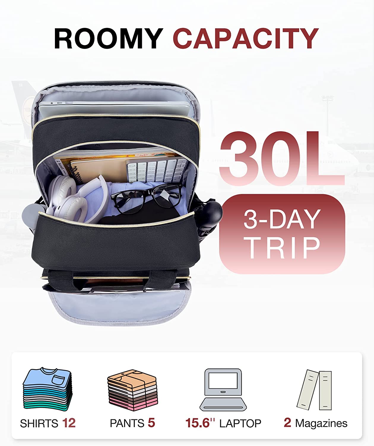 • Multipurpose: Its chic look makes it as a travel backpack, laptop backpack, college backpack, casual daypack, computer backpack, bookbag. The airline approved carry-on can be fitted overhead and under-seat, is ideal for the weekend trip, business trip and travel. This roomy backpack is perfect as a gift for friends, family, women or college, for birthdays, Valentine's Day, Christmas Day