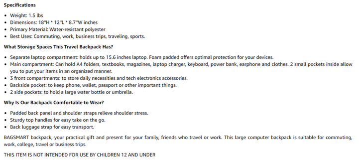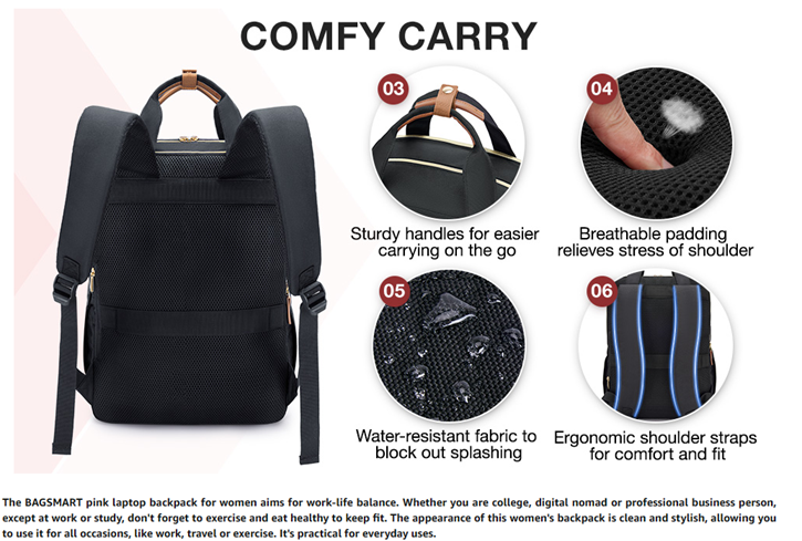 • Long-lasting Durability: BAGSMART laptop backpack for women is well made of water-resistant polyester. Metal double-way zippers make opening/closing simple and fast