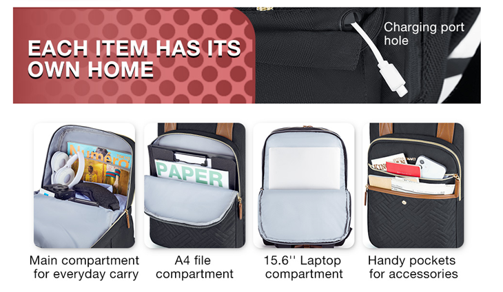 • Large Capacity: The travel backpack has multiple organized pockets, up to 7 compartments. Comes with separate laptop compartments to protect a 15.6 inch laptop; a large main compartment to store daily supplies, such as A4 folders, textbooks, magazines, laptop charger, keyboard, power bank and clothes. 2 small pockets added allowing your small items in an organized manner. Dimensions 18 * 12 * 8.7 inches