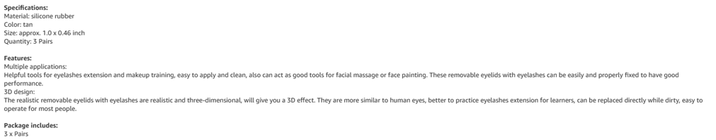 Convenient to Store: Our removable realistic eyelids with eyelashes have proper size for you to store, easy to clean for reuse; you can use water or makeup remover to remove stains and makeup after each application