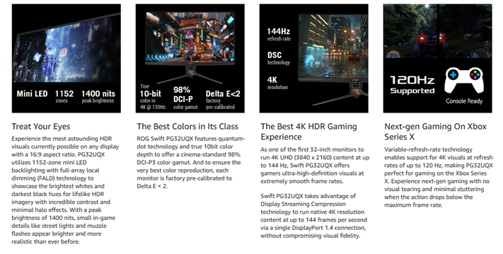 • 32-inch 4K (3840 x 2160) mini LED gaming monitor with 144 Hz refresh rate designed for professional gamers