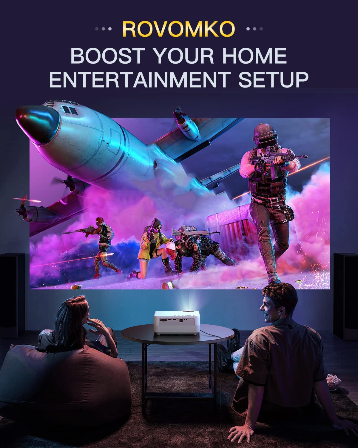 • ?Breathtaking Visuals:ROVOMKO movie projector supports digital ±15° keystone correction,max display 350" large screen,mirror your favorite movies to a massive screen in seconds via MKO26 home projector.Use the digital zoom to alter the image size without having to move the projector—simply sit back to enjoy your home theater.