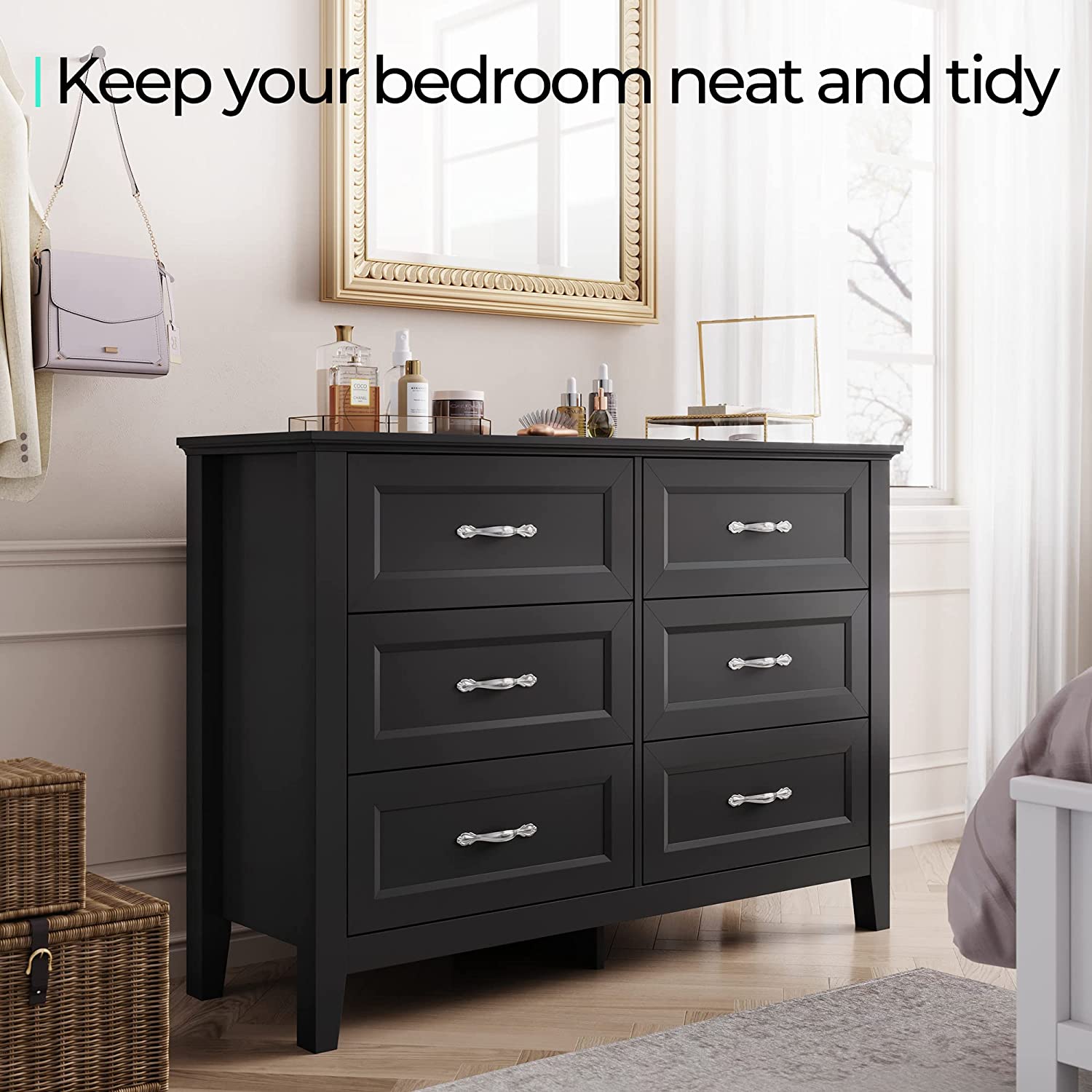 [STURDY STRUCTURE] - The bottom cross support structure and wooden frame make this 6 drawer dresser more stable and durable than others which will not deform after several years. Overall dimensions: 15.7"D x 47.2"W x 33.5"H.