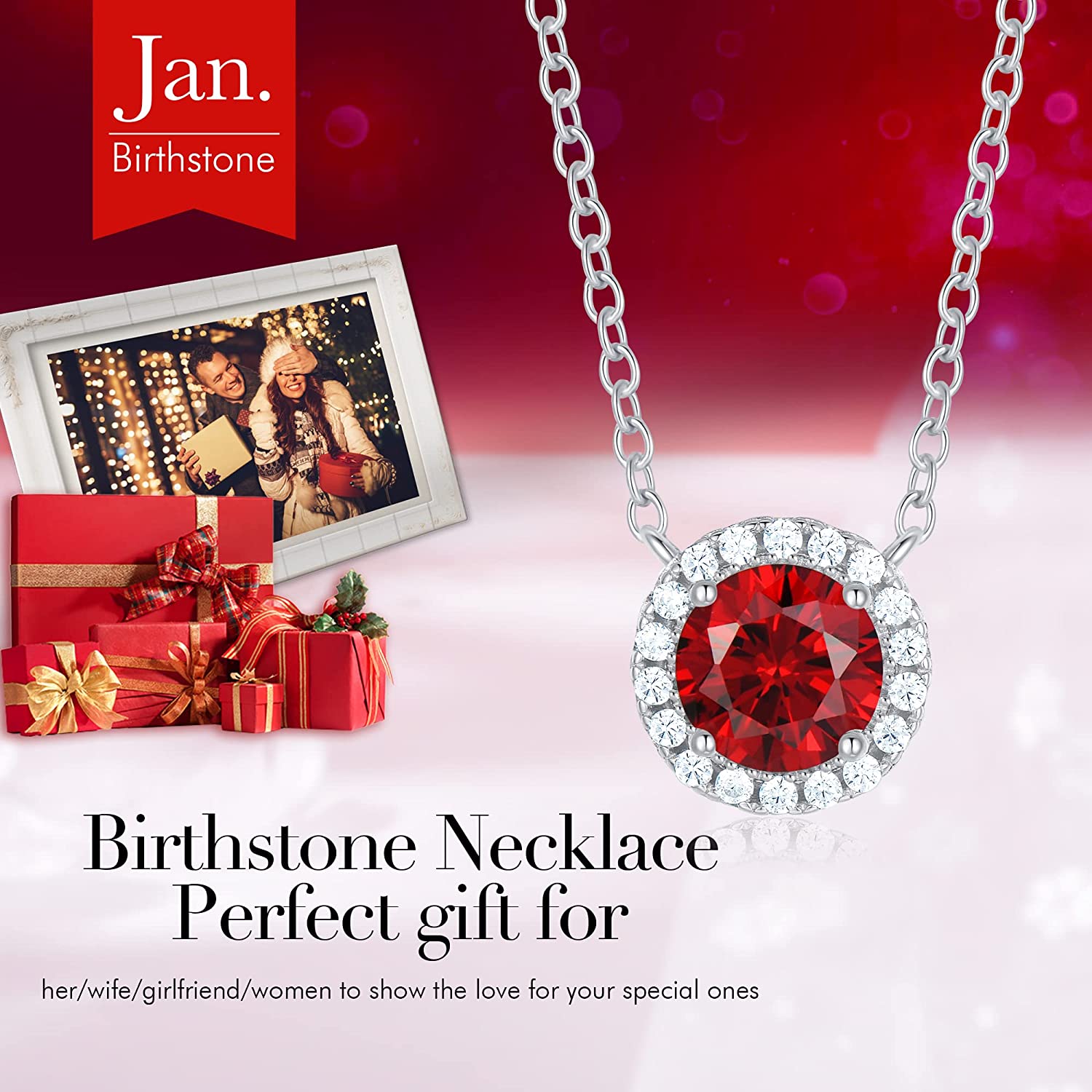 Gloffery 925 Sterling Silver Birthstone Round Solitaire Pendant Dainty Halo Necklaces for Women, Anniversary Valentine's Day Birthday Mother's Jewelry Gifts for Girls Women Wife Mom Girlfriend