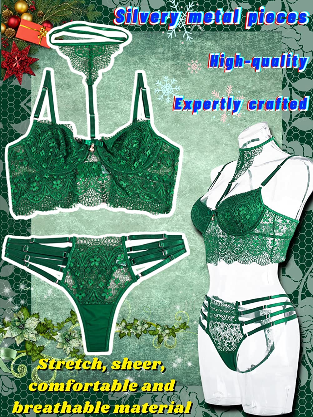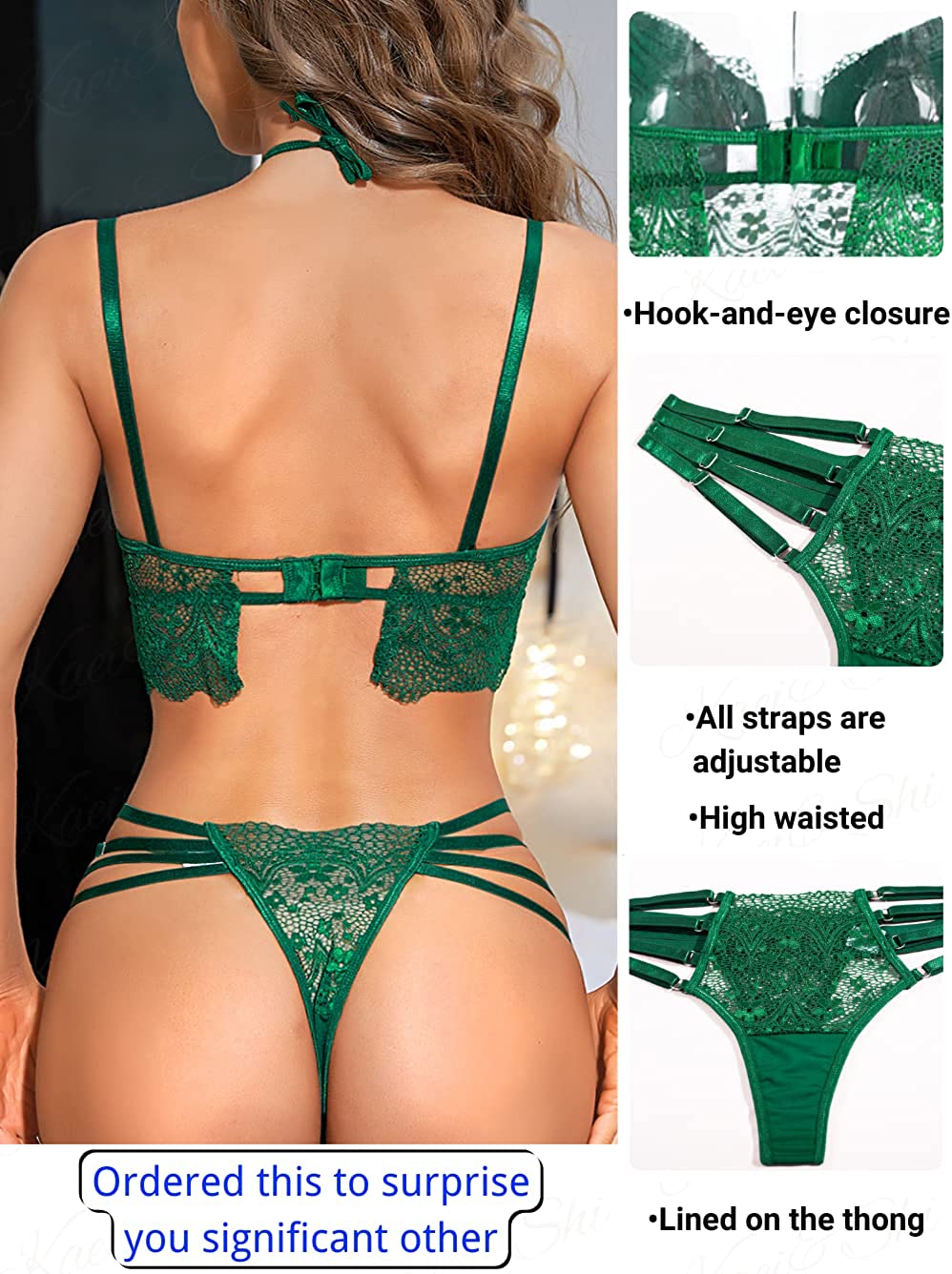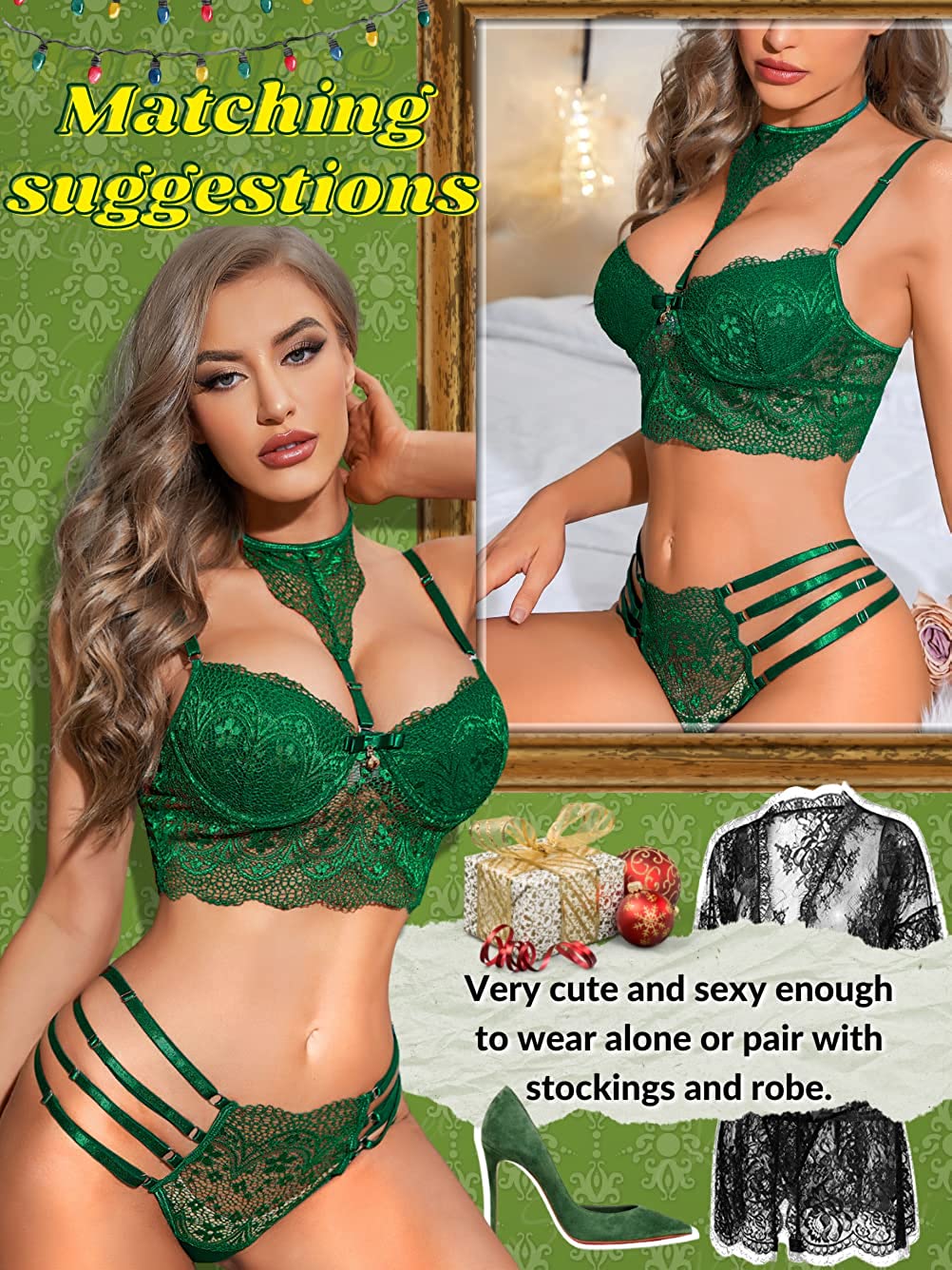 • ✿Design: Lingerie set with high waisted lace thong bottom will highlight your waist line. Hook & eye back closure and adjustable straps make it easy for wearing.