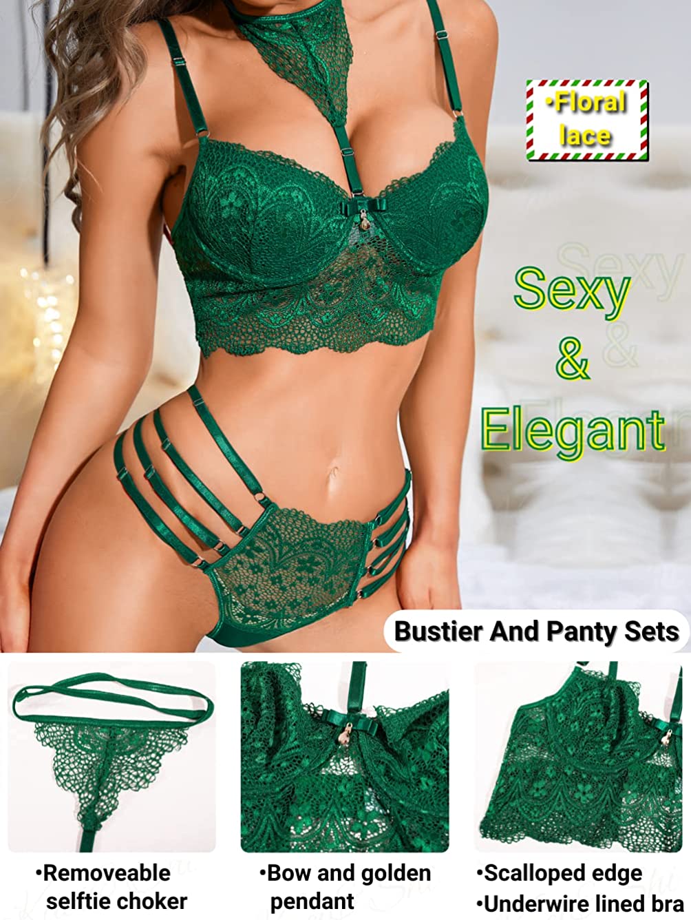 • ✿Feature: This matching bra and panty set is featured with removeable selftie choker, strappy, double layer, scalloped trim which shows your curve beautifully.