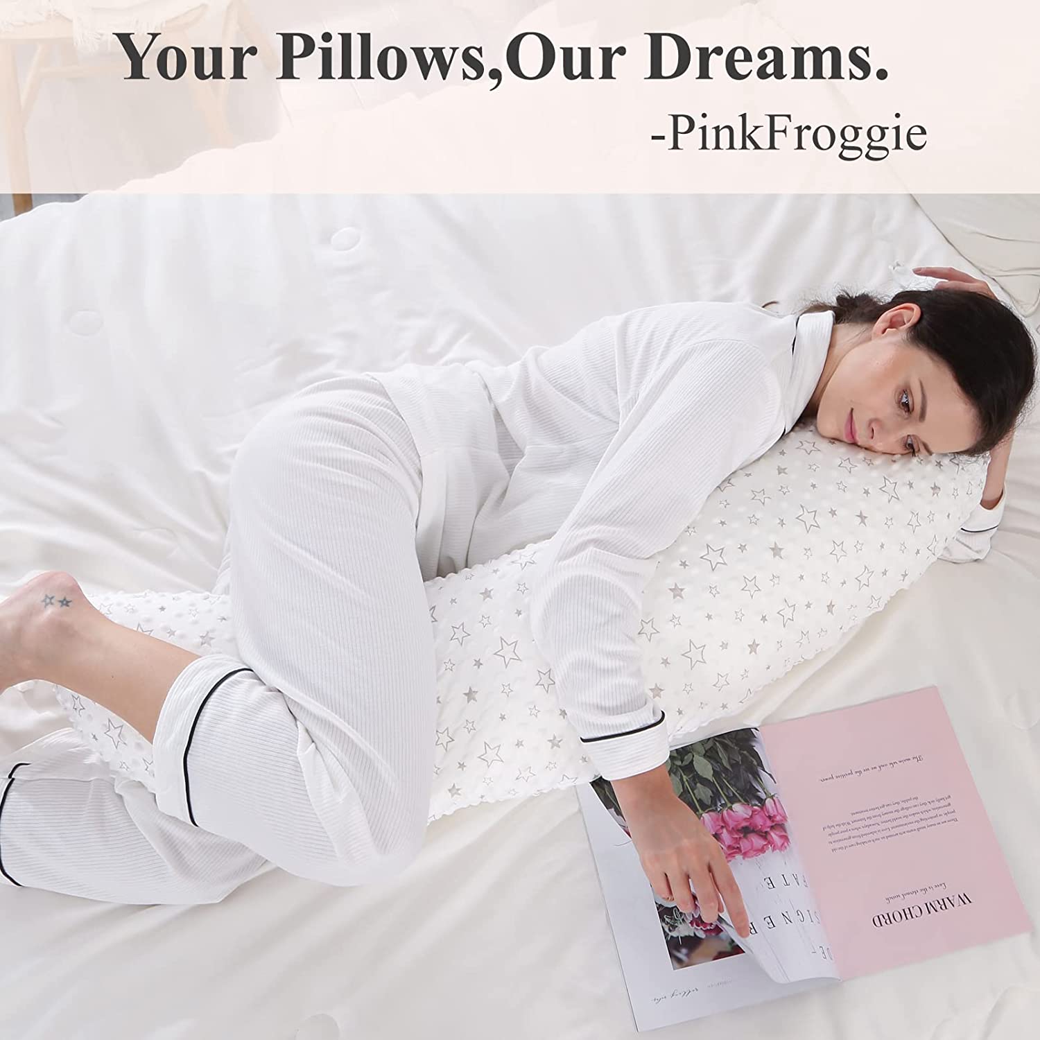 • ?RESTFUL SLEEP: Our PinkFroggie super-soft full body maternity pillow eases you into a restful sleep and allows you to rest comfortably in a lateral position. The pregnancy pillow offers back, legs, belly, shoulder and hip support;