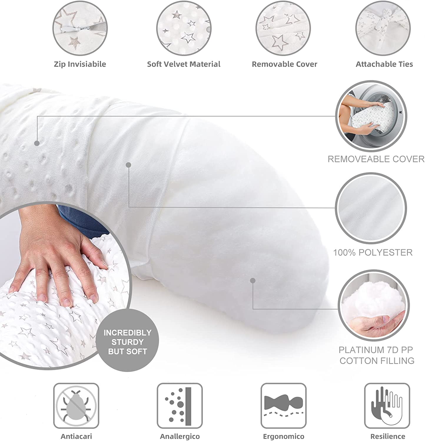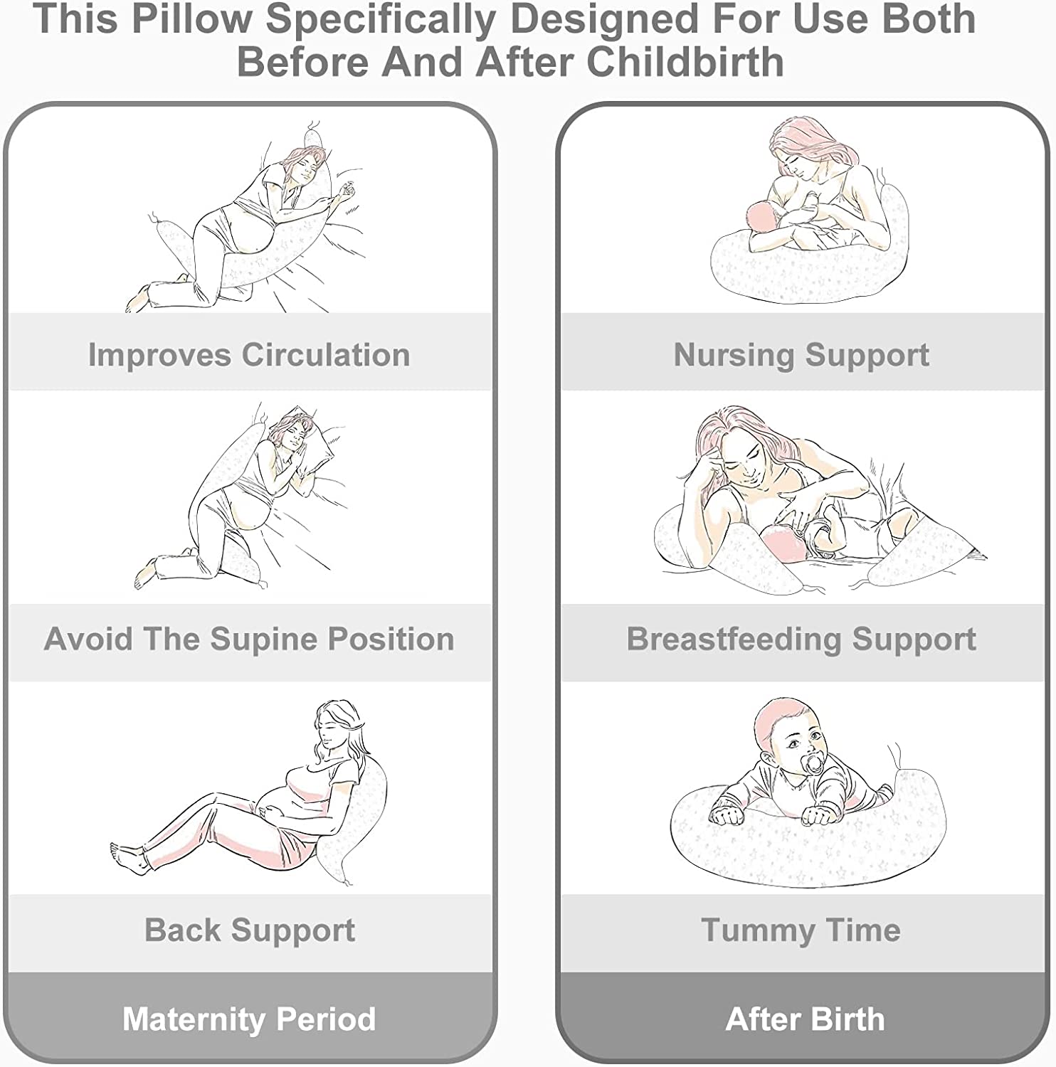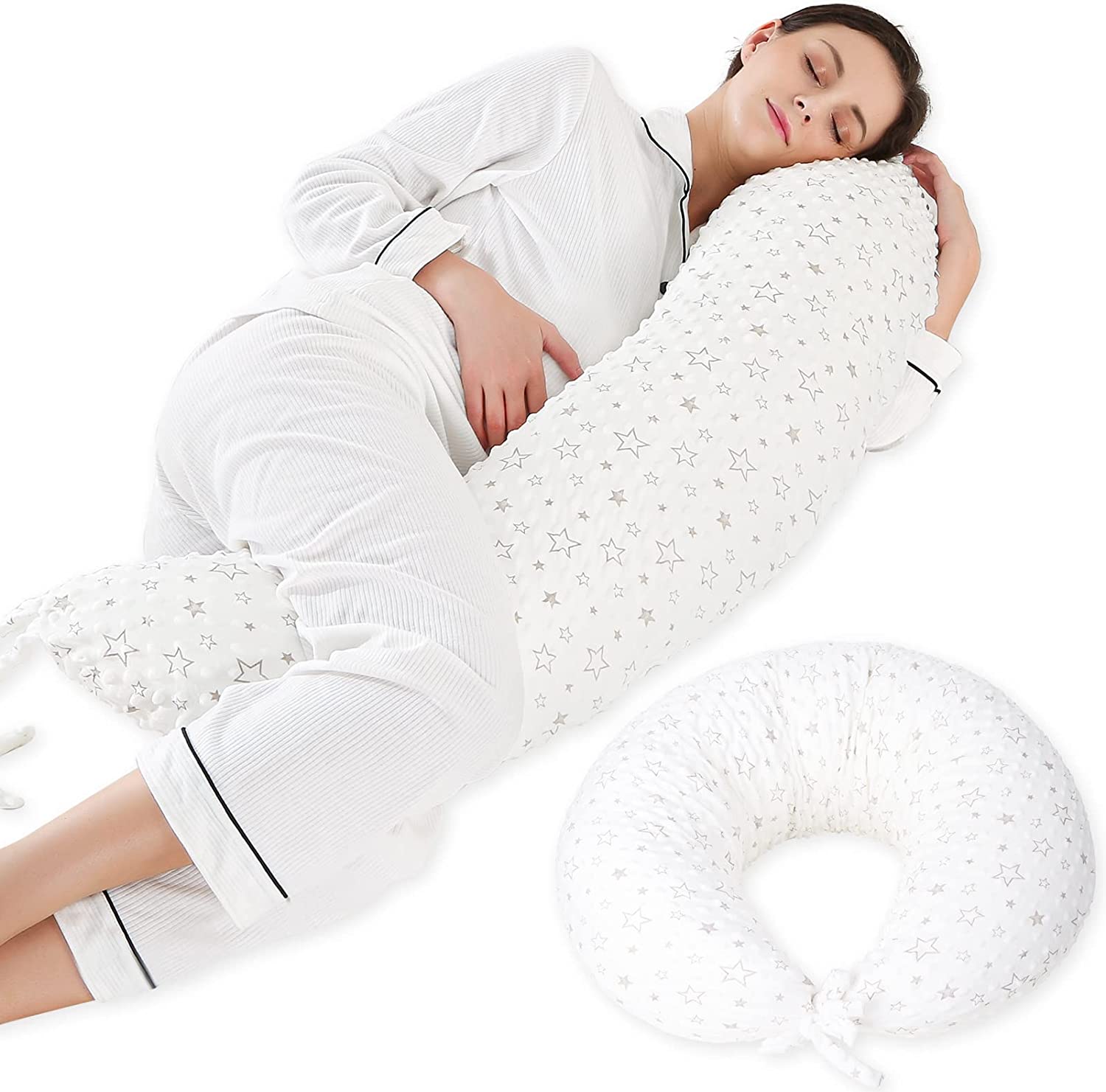 • ?MULTIPURPOSE: Not only a pregnancy pillow but also a nursing pillow. Wrap your baby in a soft embrace and keep your hands free during nursing. The double-row strap design allows you to transform this pregnancy sleeping pillow into a breastfeeding pillow and play support;