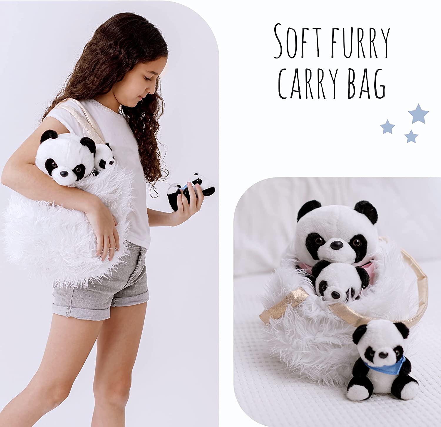 The shaggy white bag adds a practical element to this whole set. Large enough to carry Mommy and two babies, Great for use at home or away.