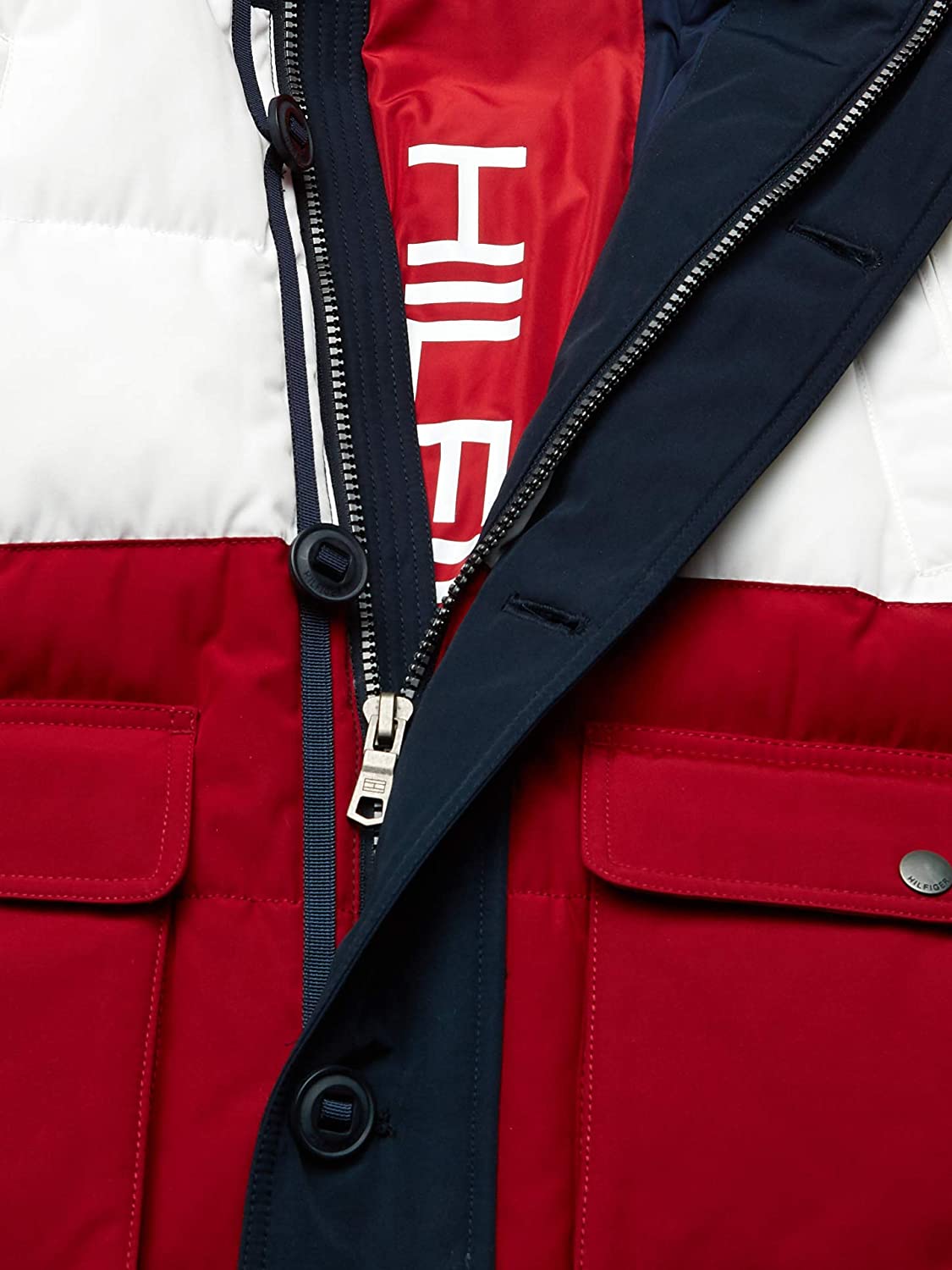 • Rib knit storm cuff details, rib knit detail on waist, and signature tommy embroidered flag at chest and tommy logo patch on arm