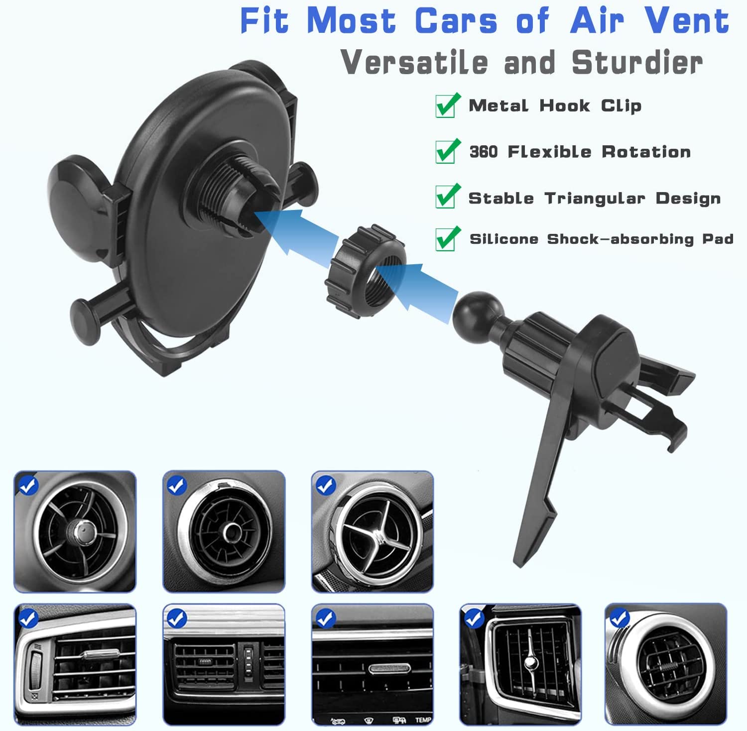 【Universal Compatibility】:This vent phone holder mount for car fits all 4.7-6.8 inches mobile phones or electronic devices, width size from 2.37 inches to 3.54 inches. Compatible with iPhone 13/13 Pro/13 Pro Max/13 Mini, 12 11 X XR XS Pro Max Mini 8 7 6 Plus SE, Galaxy S21 S20 Ultra Plus S10 S9 S8 Edge Lite Note A12 A51, LG, Moto, Pixel and more smart phones.